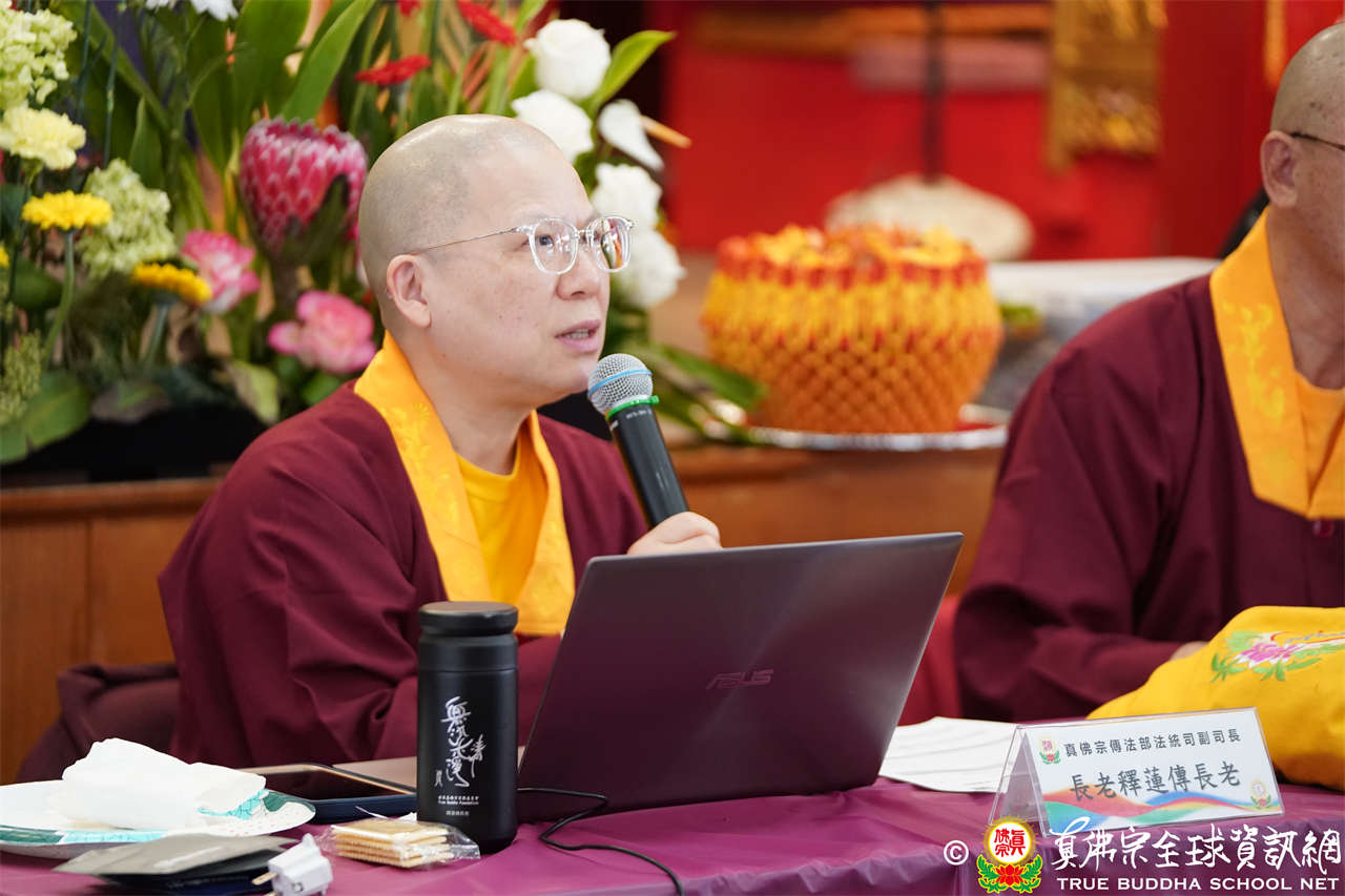 育賢司–司長蓮哲長老報告佛學教育的規劃。