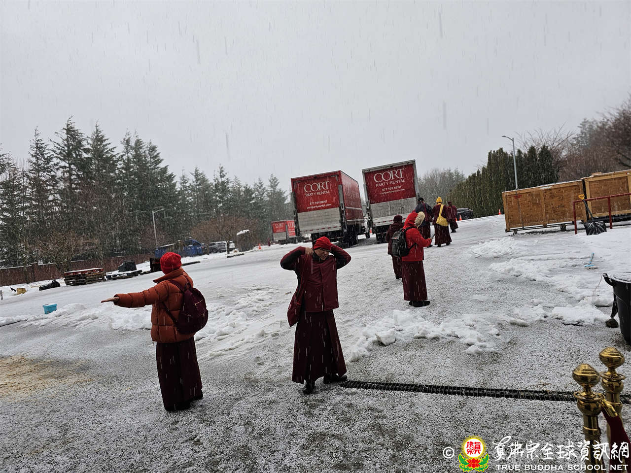 下午休息時間,下起冰雹,來自東南亞的上師們童心大發紛紛丟起雪球。第一天會議氣氛非常融洽,愛心菩薩組員分開團聚,頓時場面沸騰起來。會議圓滿後,由公關處籌畫上師聯誼晚宴,本次特地選擇在「劉一手」火鍋店,在天冷的西雅圖圍爐,眾上師熱情溫度可將室外冰雪融化,更是宗委會另一種表達溫馨之意。