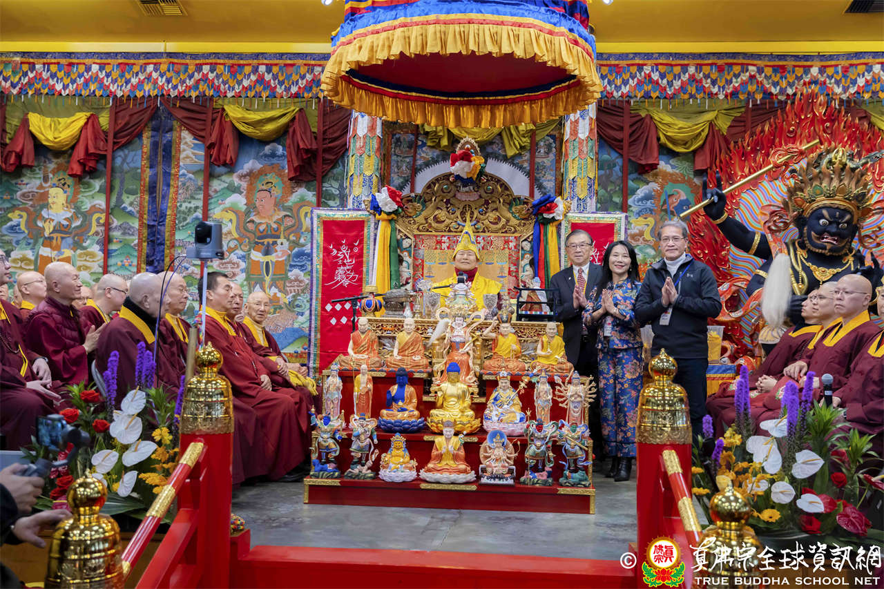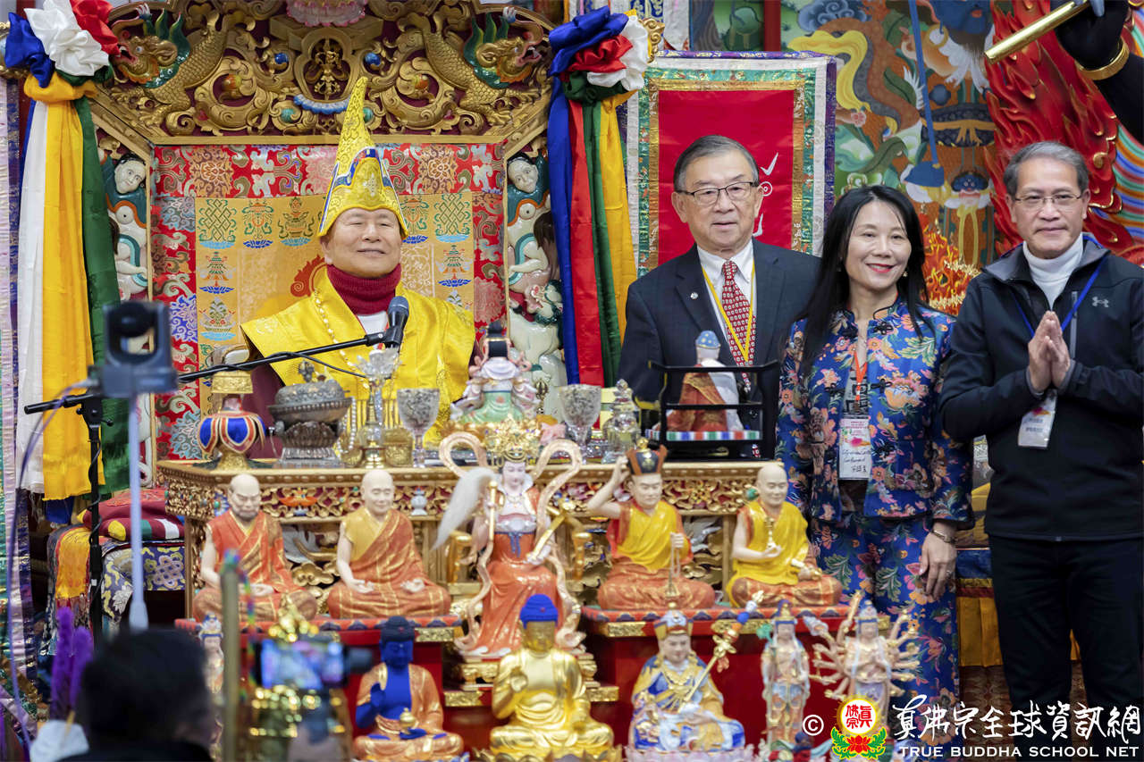 護摩結束後,大會歡迎是日貴賓,來自貝爾維尤(City of Bellevue)的李瑞麟(Conrad Lee)前市長、紐卡斯爾(City of New Castle)的孫榮芬(Sun Burford)市議員及廖東周大使上台合影。此外,李瑞麟前市長表示為蓮生法王對於社會所提供的幫助非常欽佩及感激。孫榮芬也表示能夠來臨法王的法會感到榮幸,同時也對法王表達崇高的敬意。