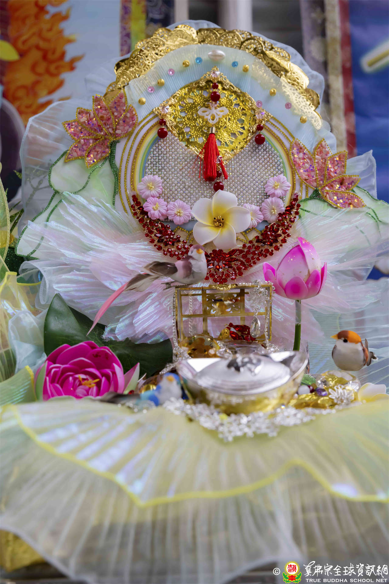 蓮生法王開示是日主尊聖觀音是觀世音菩薩千百億化身之一,祂有第一富翁的法。所以今日從清晨到晚上都是傾盆大雨,財大如雨注,寓意遇水則發。
