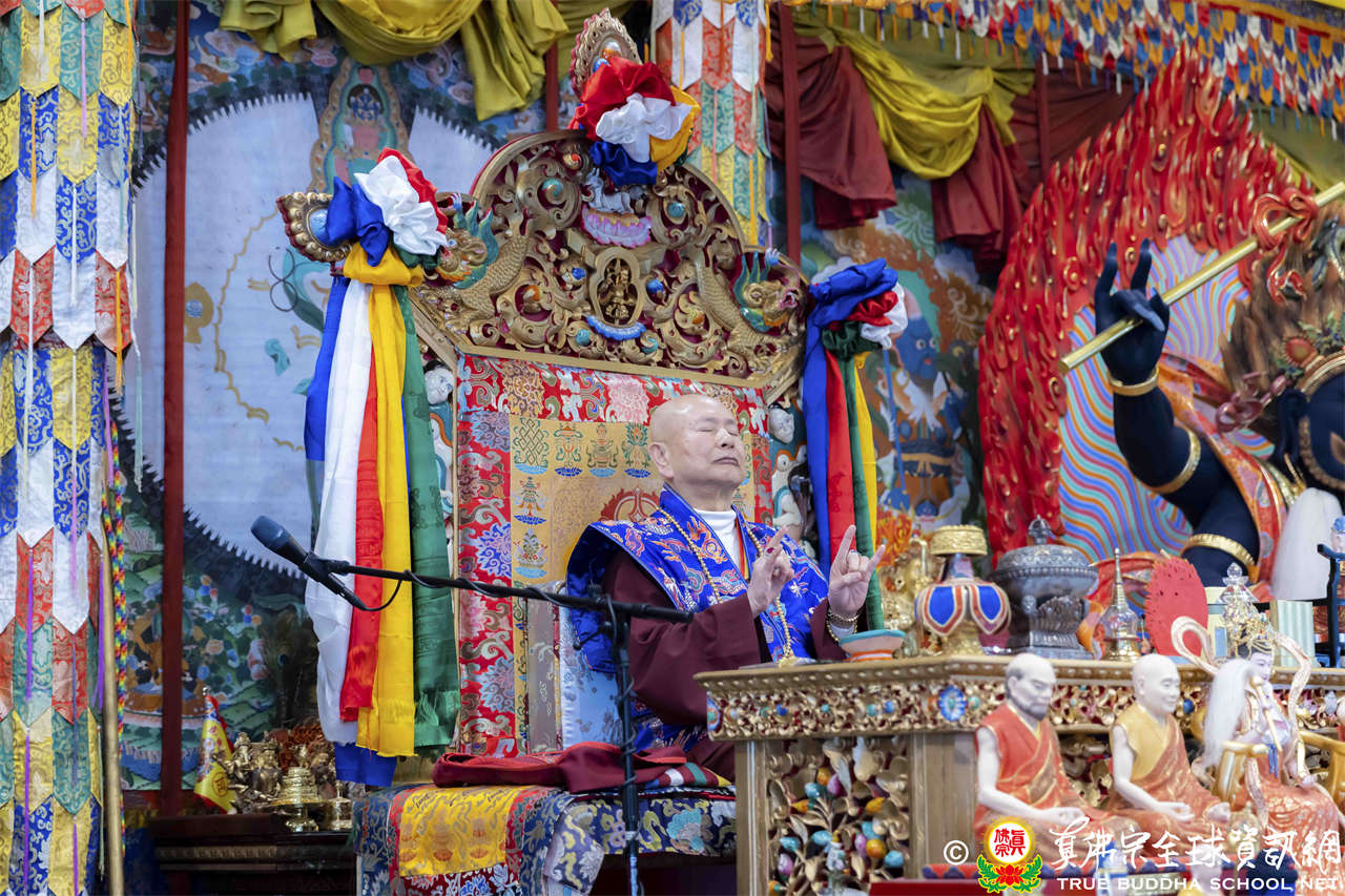 法王繼續解釋:佛是無來去的,也是因無所得而得。如《金剛經》的:過去心不可得、現在心不可得、未來心不可得。過去已過,現在正成為過去,未來也在成為現在,三際一如。就算是現在擁有的一切,都會變成沒有。悟到得不到什麼,就煩惱解脫。因為什麼都得不到,剩下的都布施眾生:財施、法施、無畏施。法王最後強調:因無所得,才是無上正等正覺。佛性沒有帶業是很重要的,人生在世就是為了酬業,懺悔過去業障,證得無所得,自然不會造業。開示結束後,法王與zoom上弟子互相問候,賜授現場與會大眾「大力金剛法」灌頂。法會圓滿結束。