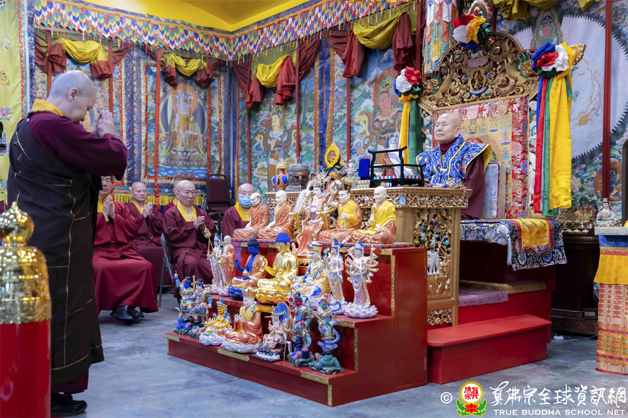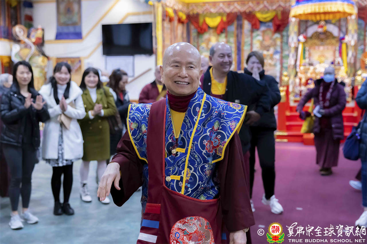 法王開示至此,護摩法會圓滿結束。接著,法王與線上的弟子打招呼,並爲現場出席者賜授穢跡金剛法灌頂。