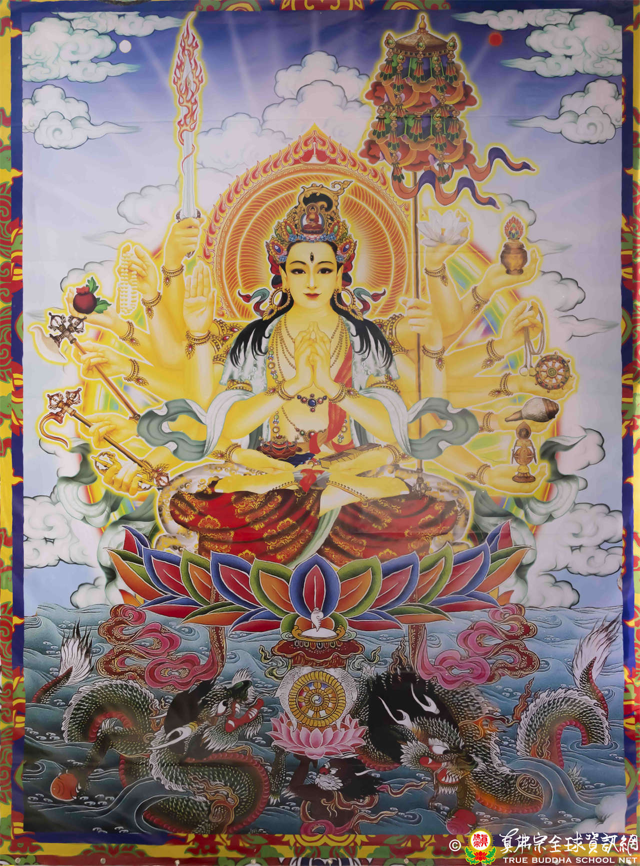 美國西雅圖彩虹雷藏寺於2024年4月21日恭請蓮生法王主壇南摩凖提佛母護摩大法會,並講授「維摩詰經」。護摩後,法王預告下星期是南摩黃財神護摩法會。法王讚歎是日準提佛母唐卡是最好、最有神的,其底下的侍者「難陀龍王」及「跋難陀龍王」也很有神。詢問得知該唐卡是由蓮金法師的弟弟所畫,並讚揚畫者有非常深厚的繪畫底蘊,才能畫出如此有神的菩薩畫像。「準提佛母」是出自毗盧遮那佛的「最勝法界宮」,有八大菩薩為眷屬:觀自在菩薩、彌勒菩薩、虛空藏菩薩、普賢菩薩、金剛手菩薩、文殊師利菩薩、除蓋障菩薩及地藏王菩薩,其密號為:清淨金剛、最勝金剛,可做為本尊及護法。
