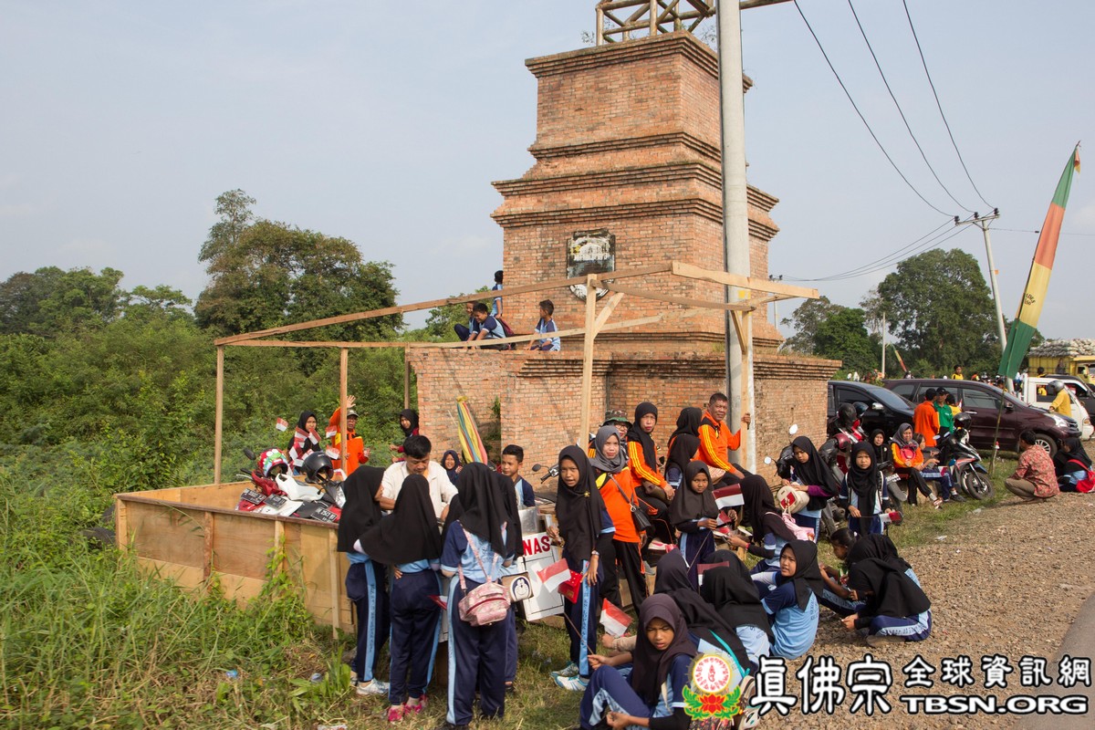 當天早上籌委會臨時獲得聖火傳遞活動的訊息,蓮悅上師立刻組織機動小組火速趕往儀式地點採訪報導。當地居民早已夾道歡迎,等待迎接聖火到臨,籌委會機動小組很榮幸能躬逢這項具有歷史意義的盛會,沿路捕捉鏡頭;當地居民及孩童們也都非常熱情的配合入鏡。