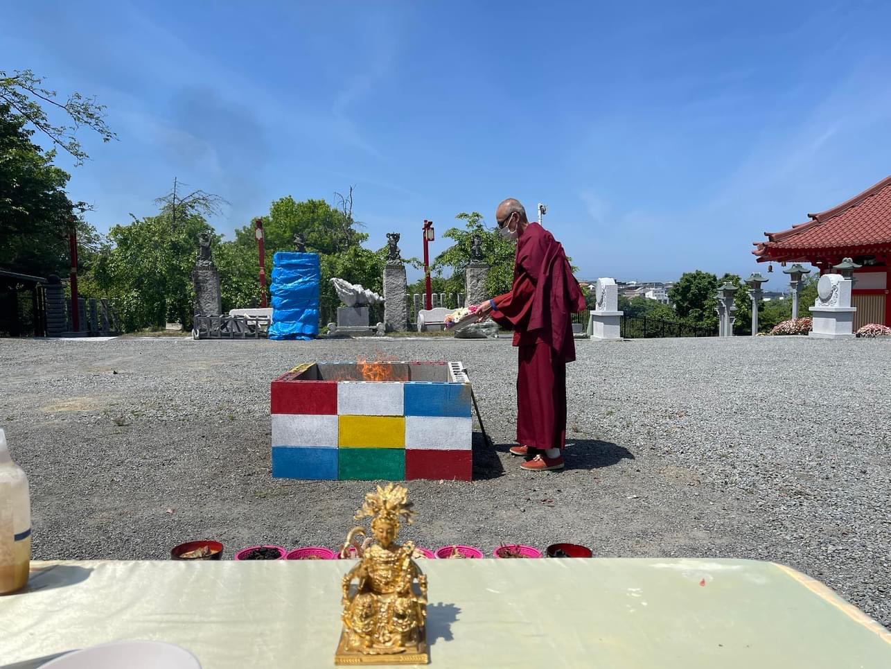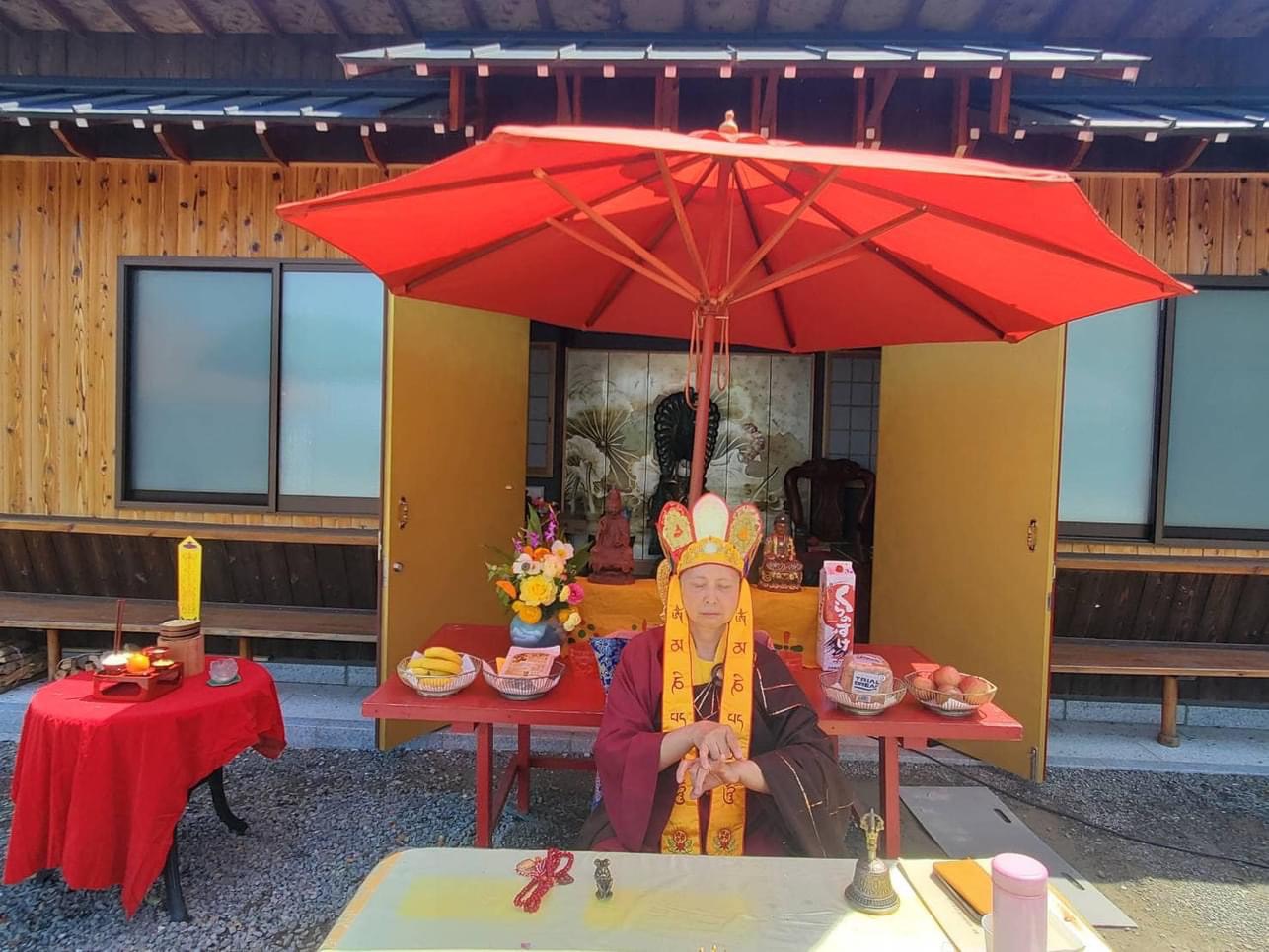 釋蓮花靜香上師於2024年4月28日在日本住吉雷藏寺主壇專壇「請佛住世瑤池金母護摩」,迴向師佛: