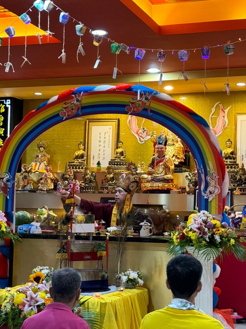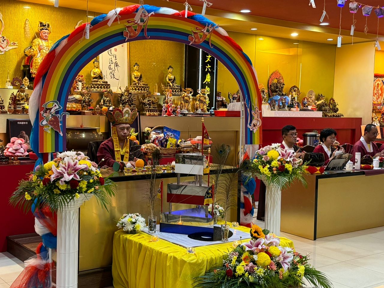 蓮僅上師於2024年5月1日在馬來西亞金海同修會主壇專壇「請佛住世瑤池金母水供」,迴向師佛: