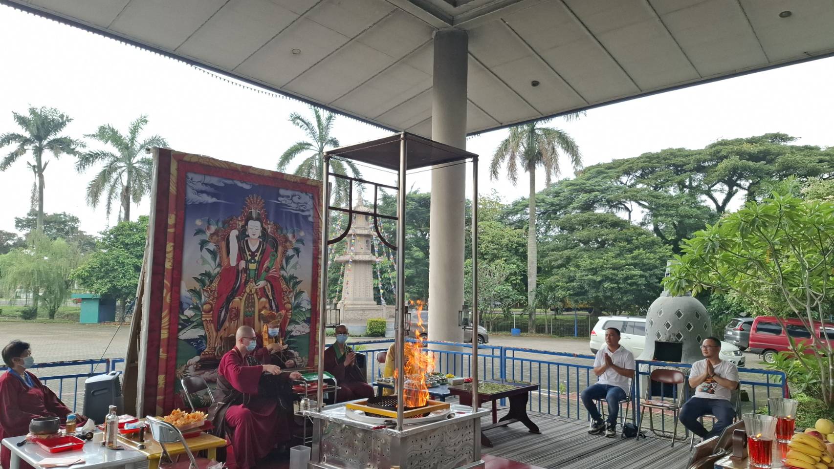 蓮飛上師於2024年5月2日在印尼雷藏寺主壇專壇「請佛住世瑤池金母護摩」,迴向師佛:
