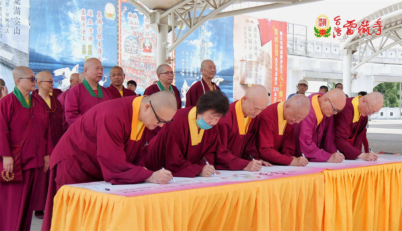 約莫中午1點25分在活動主持人高喊「慶祝蓮生法王80佛誕暨完成創作300本鉅作正式開跑!」後,眾人振奮。司儀蓮就教授師在她敲三聲大罄後,全場倏然寂靜,活動也就此拉開序幕,議軌依序進行。主壇上師:長老蓮哲上師;護壇:蓮歐上師、蓮東上師、蓮余上師、蓮風上師、蓮墻上師、蓮型上師、蓮勤上師、蓮楹上師、教授師、法師團、及講師助教。將近尾聲時,大眾舉起哈達「請佛住世」,音樂響起眾人隨之哼唱,許多人感觸落淚,場面甚是感人。