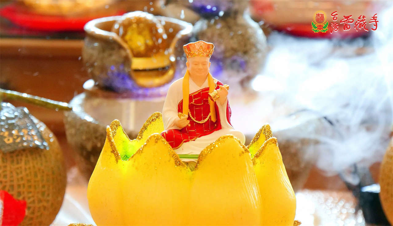 台灣雷藏寺為慶祝「蓮生法王80佛誕暨完成創作300本鉅作」啟動暖壽慶典等系列活動,在大門入口處、廣場均掛上喜慶「聖凡雙喜盛筵」大布條。