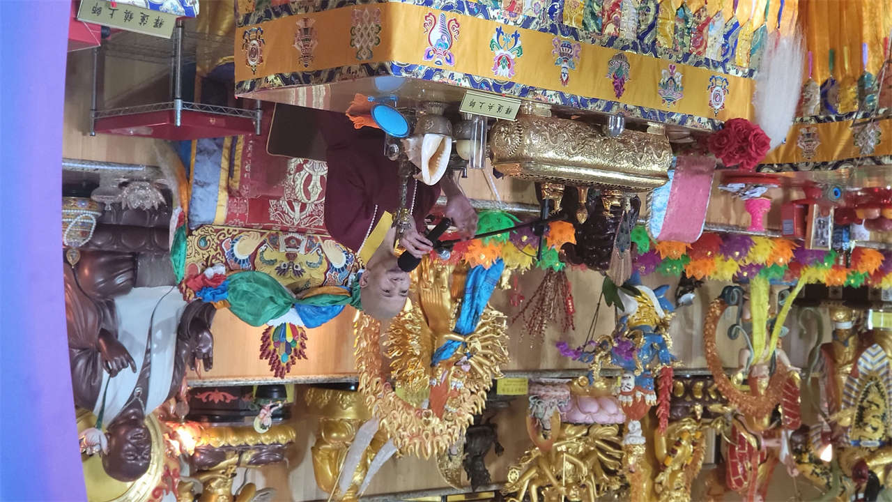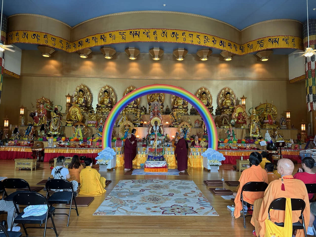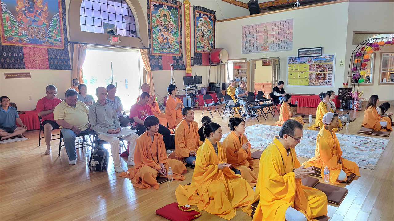 釋蓮央金剛上師於2024年5月19日在美國達拉斯三輪雷藏寺主壇專壇「請佛住世瑤池金母水供」,迴向師佛: