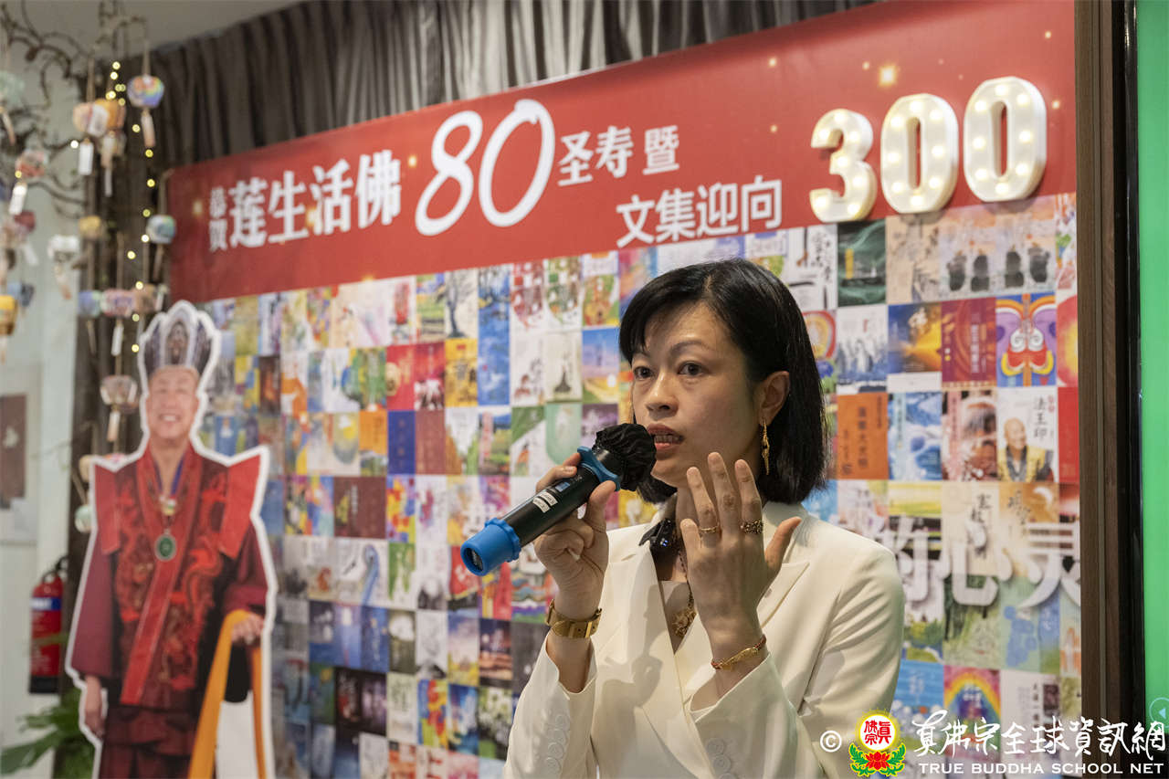 釋蓮悅上師,分享「我所知道的蓮生活佛」,她說:我們每個人用不同角度來了解的師尊是不一樣,師尊300文集對一個作家來是遙不可及的里程碑,真佛報從四月開始連載了「一個活佛的秘境」將師尊的一生,由平凡到超勝娓娓道來。另外「師尊飛越300文集導讀」,將師尊300冊文集,分為不同階段不同時期做了完整的剖析,讓同門拜讀 盧師尊的智慧書海時,能有清晰的導入點,歡迎大家來追劇!