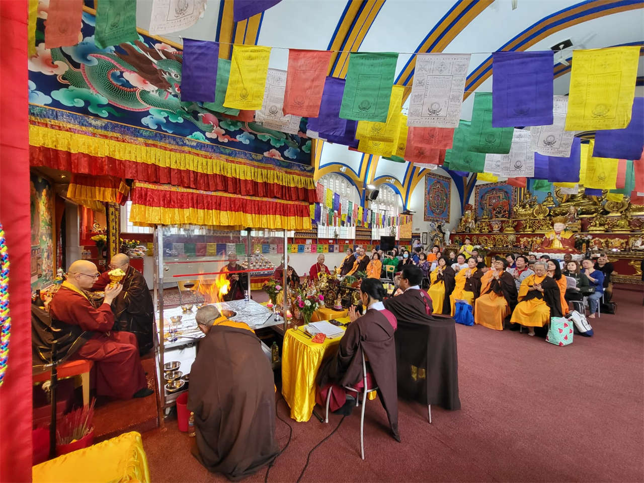 釋蓮聲上師於2024年5月19日在英國真渡雷藏寺主壇專壇「請佛住世瑤池金母護摩」,迴向師佛:
