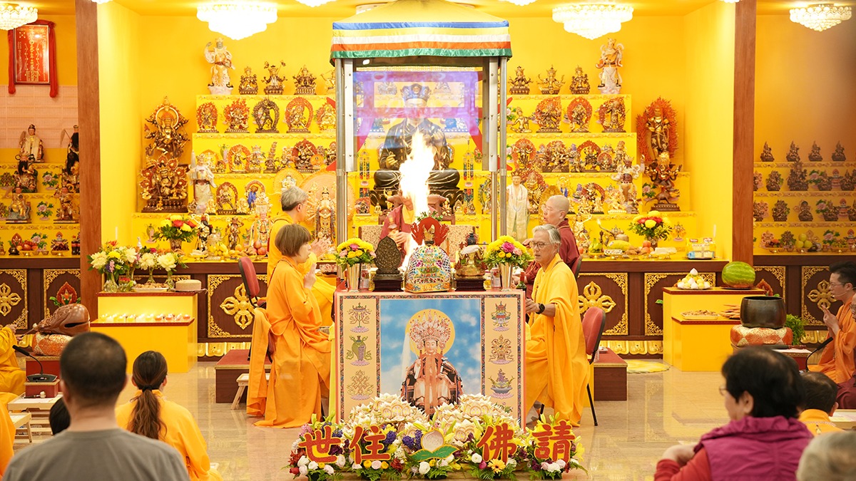 長老釋蓮雄上師於2024年5月25日在加拿大淨印雷藏寺主壇專壇「請佛住世瑤池金母護摩」,迴向師佛: