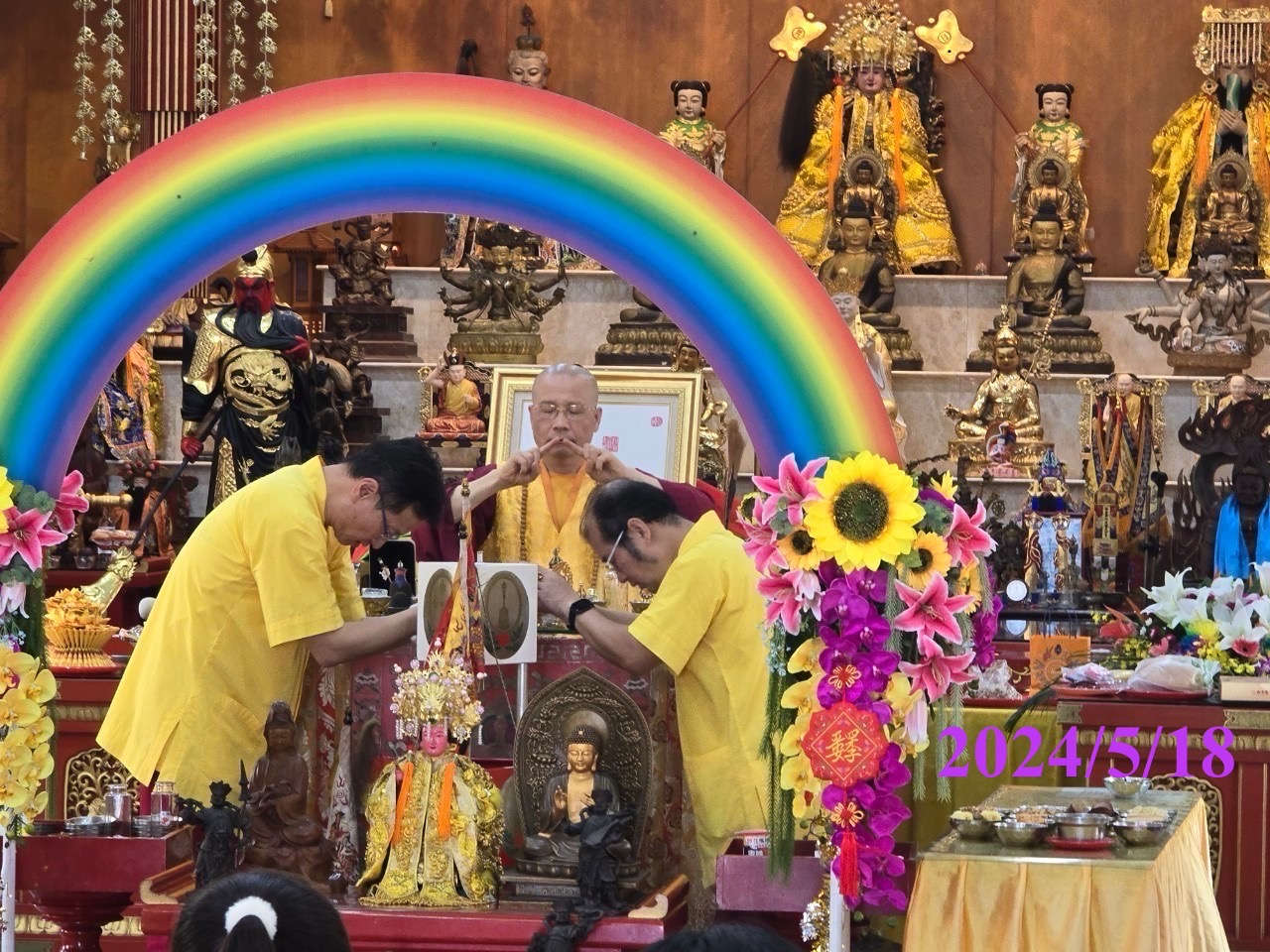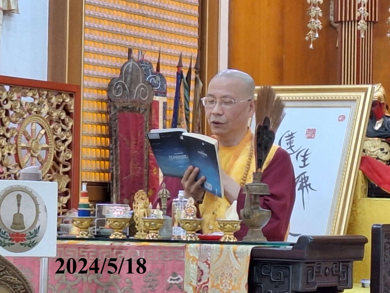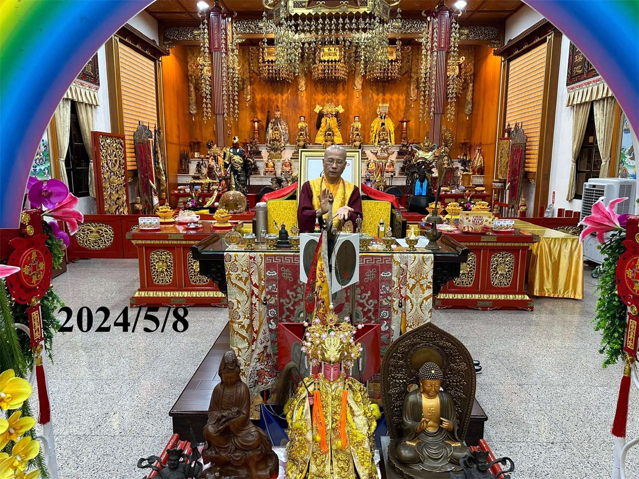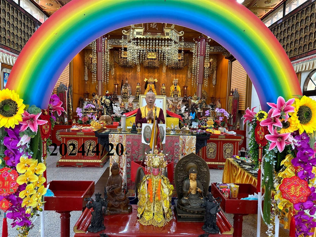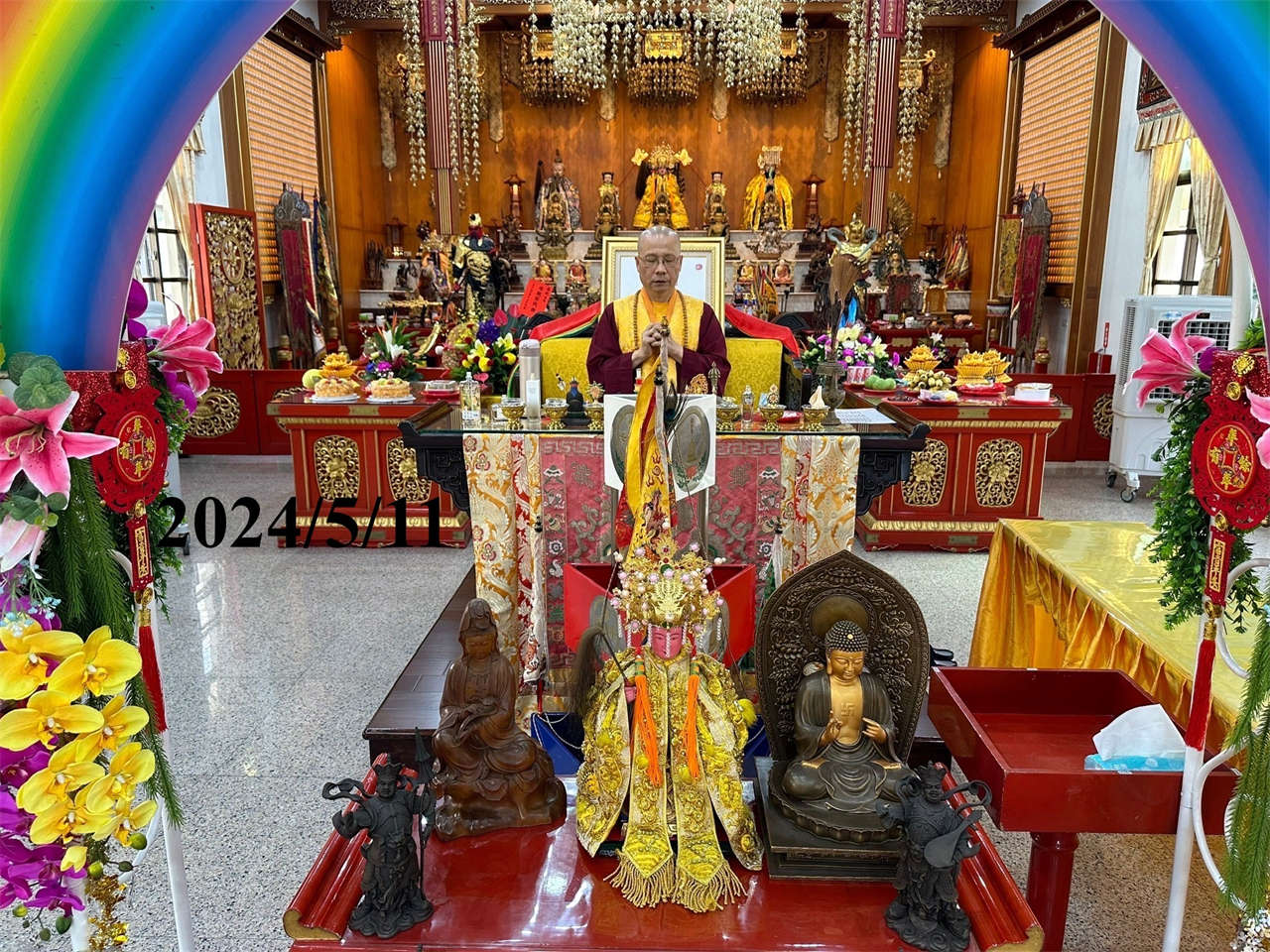 釋蓮郲上師於2024年4月17日、4月20日、5月8日、5月11日、5月15日、5月18日、5月22日在台灣金極雷藏寺主壇專壇「請佛住世瑤池金母水供」,迴向師佛:
