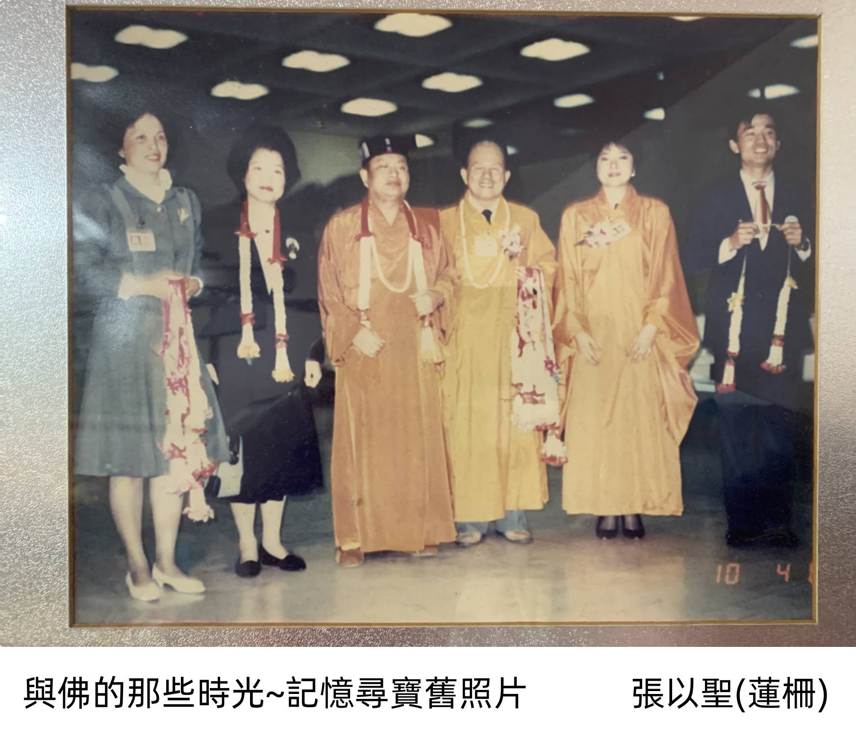 照片中人物:左起:海關人員(也是皈依師尊的弟子)、師母、蓮信上師(劉文卿)(未出家前)、台北「法聲堂」蓮體法師(未出家前)、海關人員:張以聖(蓮柵)