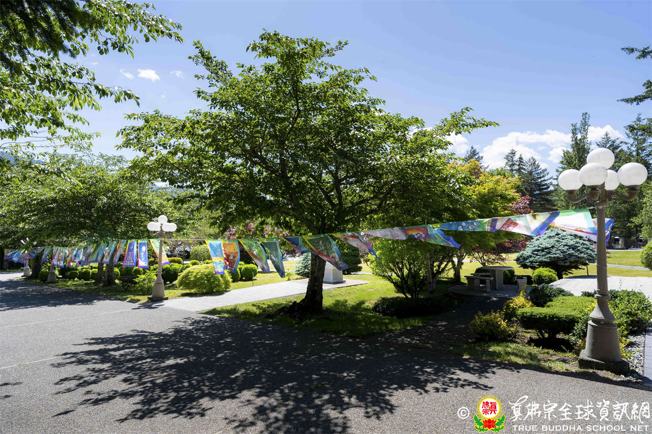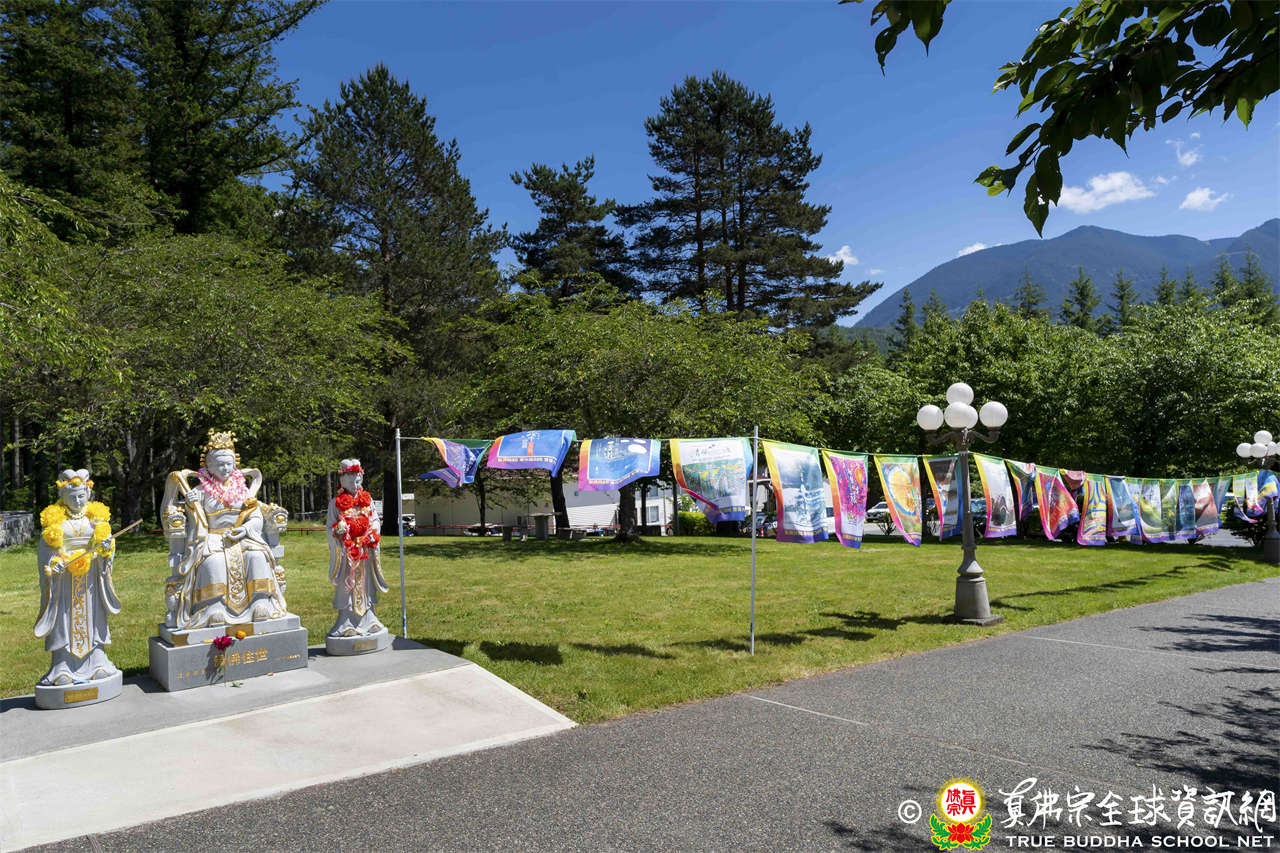 6月9日被群山環繞的彩虹雷藏寺,大日普照。世界各地的弟子們慕名前來護持根本上師蓮生活佛主持的殊勝的大孔雀明王護摩法會。
