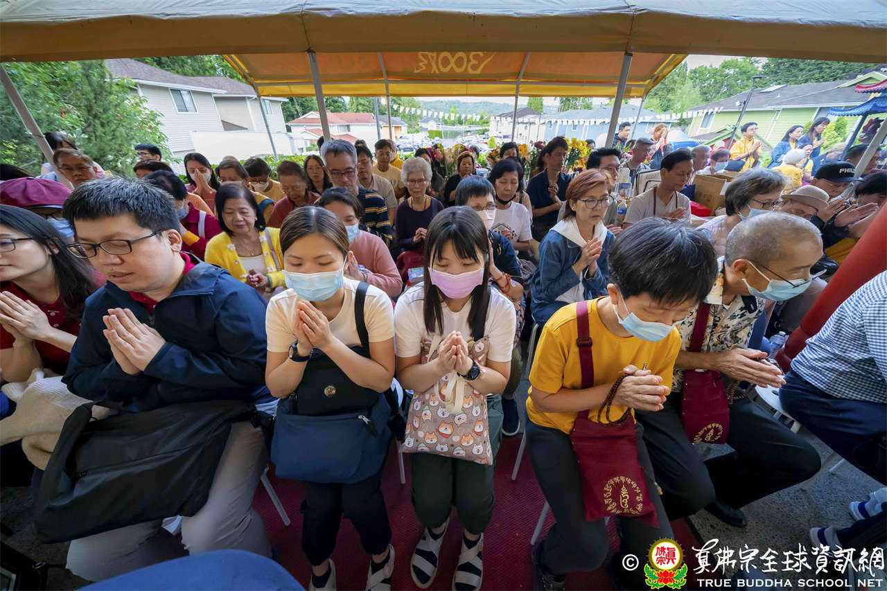 持咒誦經、稱念佛號(師尊現場唱誦阿彌陀佛佛號),自身融入於唱誦的聲音,就能夠把心靈清淨,因為嘴巴唱唸的同時,身、心、口三者合一。《阿彌陀經》中有記載要往生佛國的條件,第一是不能少善根、第二是要一心不亂的唸佛,也就是身口意合一的唸佛,這才是真正的唸佛。