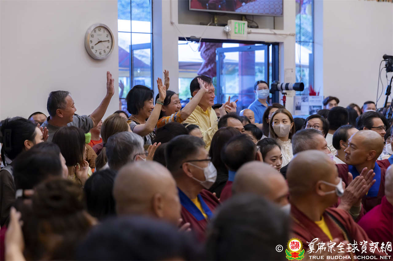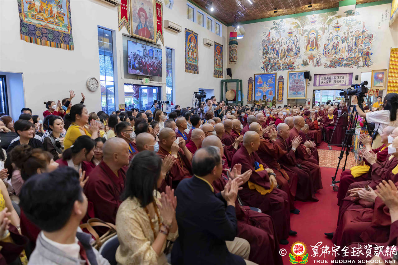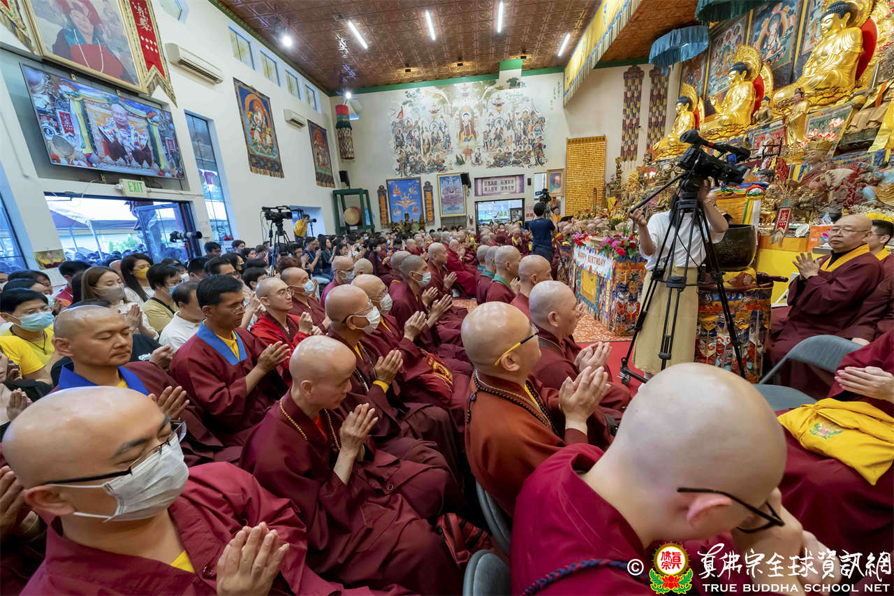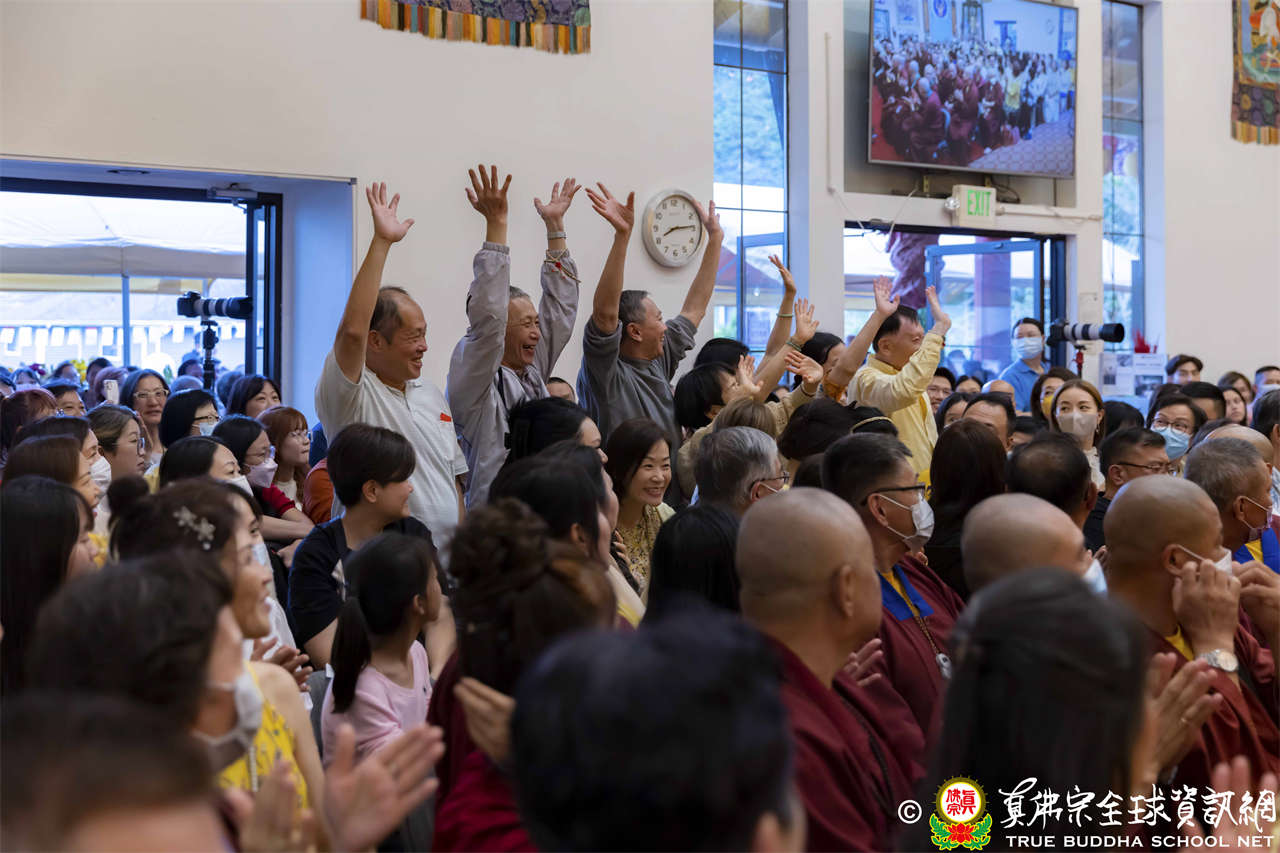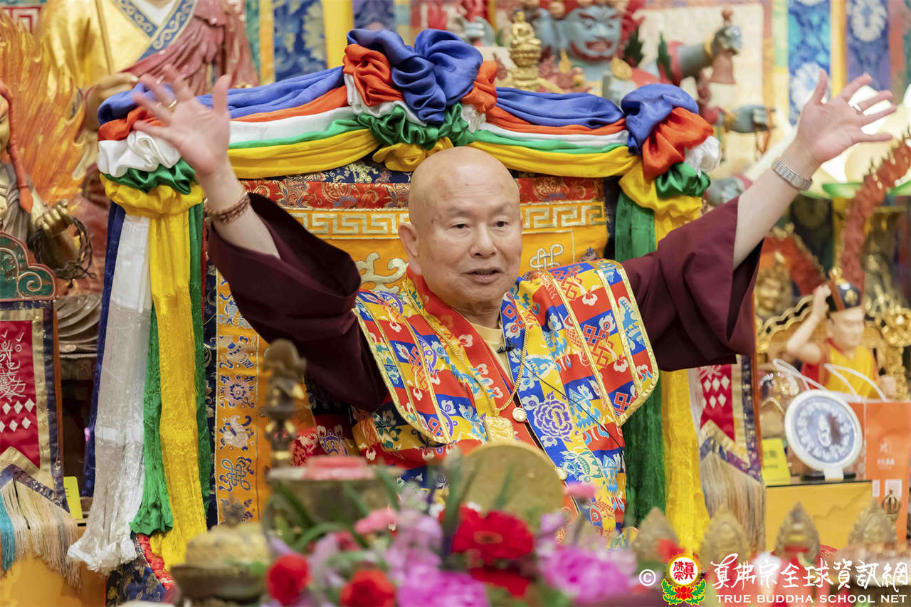 在莊嚴肅穆的共修後,聖尊首先於開示中感謝為了慶生會特別從世界各地來的弟子們。