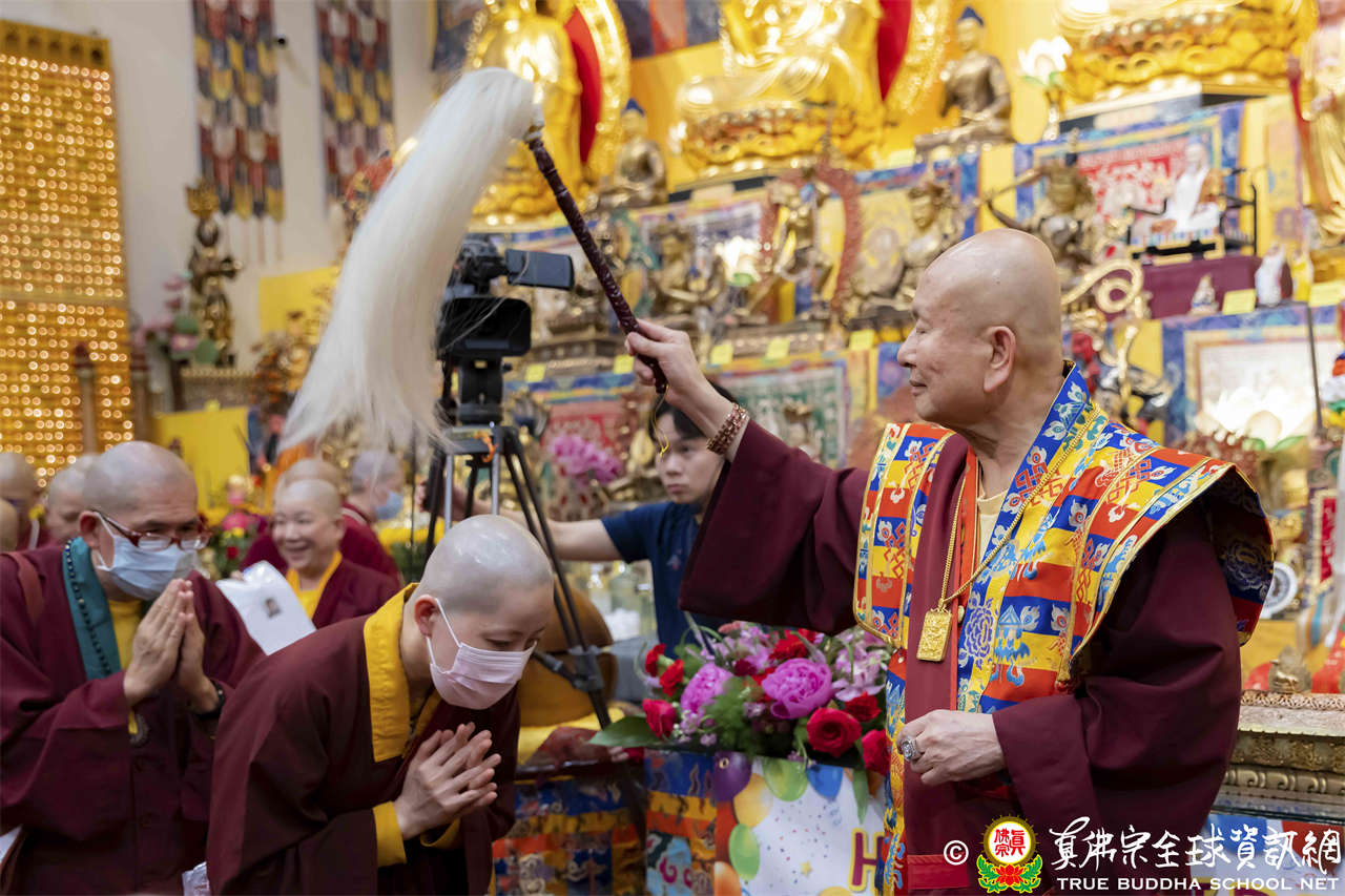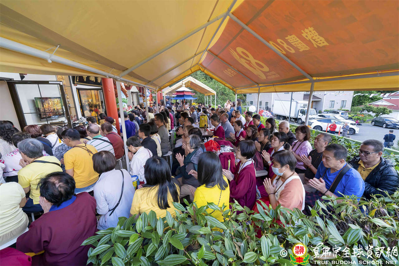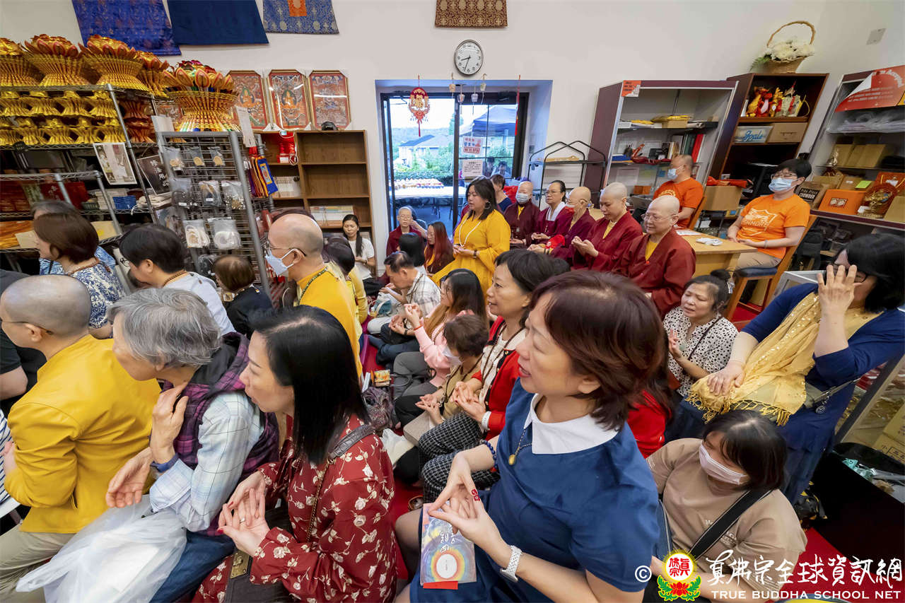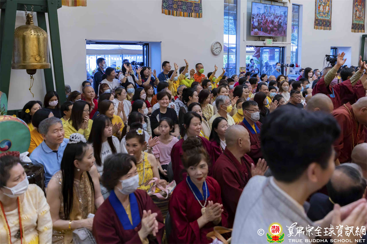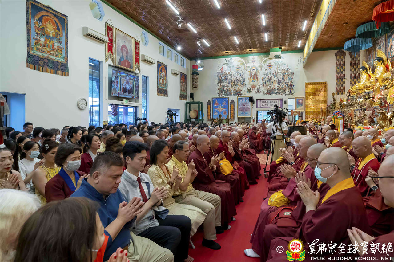在莊嚴肅穆的共修後,聖尊首先於開示中感謝為了慶生會特別從世界各地來的弟子們。