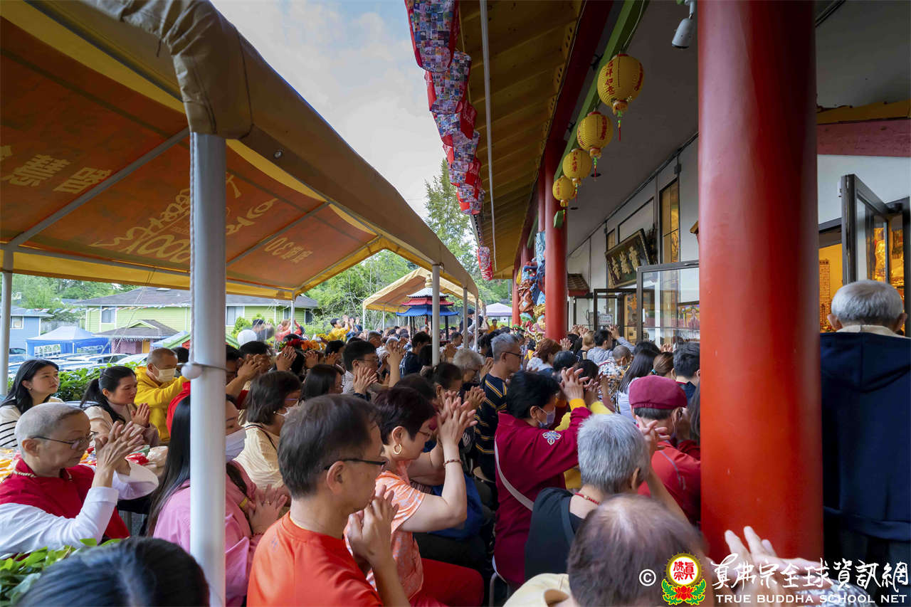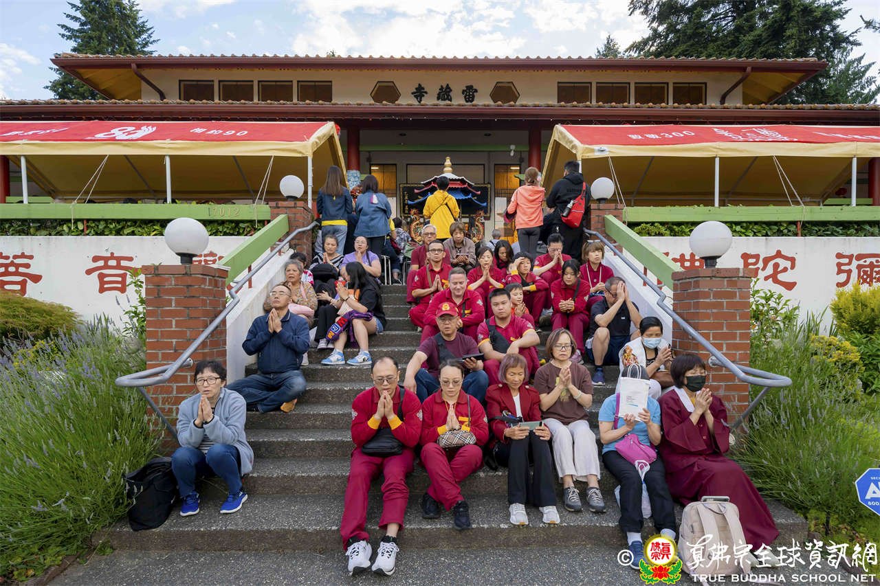 聖尊八十壽誕之際,適逢著作跨越三百本的殊勝里程碑,在這雙喜大慶意義非凡的日子裡,祖廟張燈結彩、喜氣洋洋。熱情的弟子們由世界各地遠道而來,齊聚於西雅圖雷藏寺參與今晚共修,大殿外佈滿了彩色氣球、布條,殿內則有壽桃、壽麵、鮮花,琳瑯滿目的供品堆滿了整個壇城。