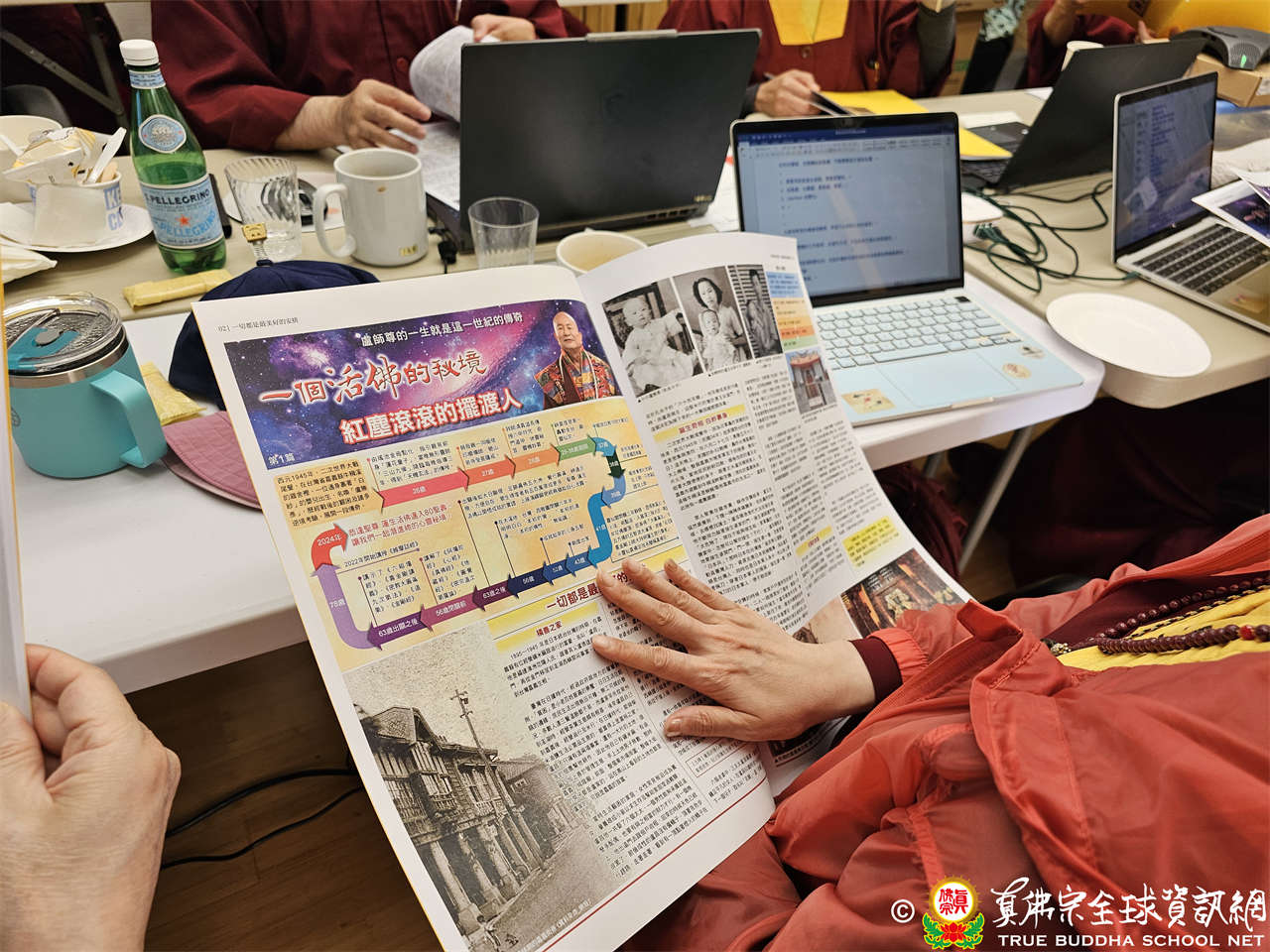 本次由宗委會策畫帶領世界各道場舉辦「聖壽跨80、文集越300」慶典圓滿舉行,但仍有許多需要改進之處,故首個議題便是佛誕慶典的檢討。慶典總策畫蓮訶上師先說道,非常感謝來自新加坡圓證堂蓮花玉笑助教及蓮花國榮、蓮花然勝、蓮花伃嵐等四位義工,於佛誕前二週便抵達西城,大力的協助佈置場地。