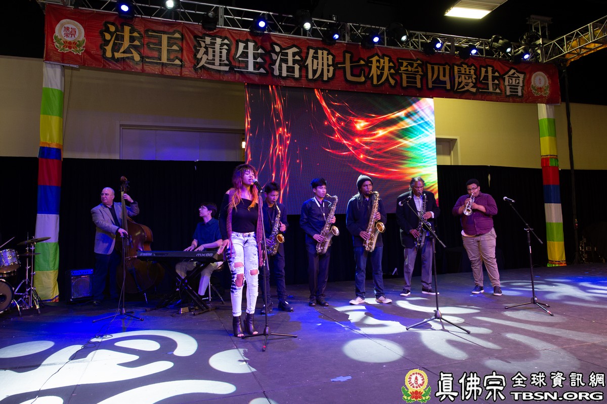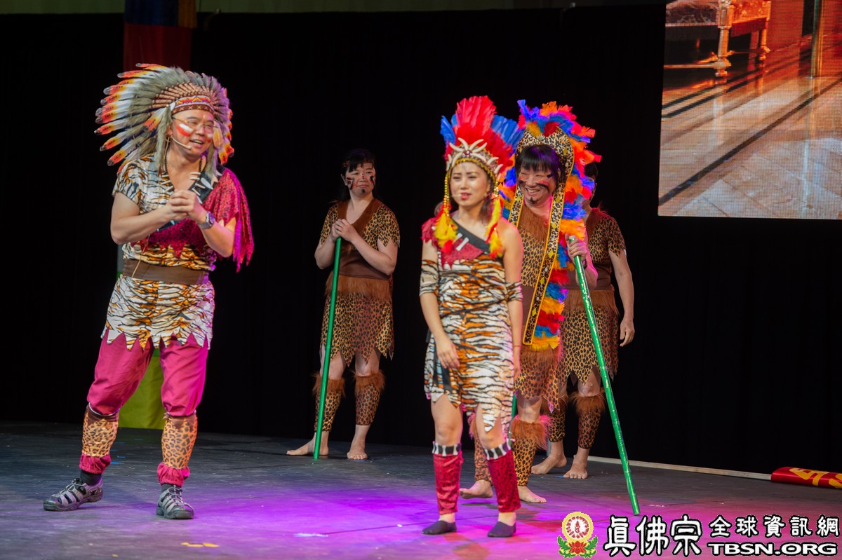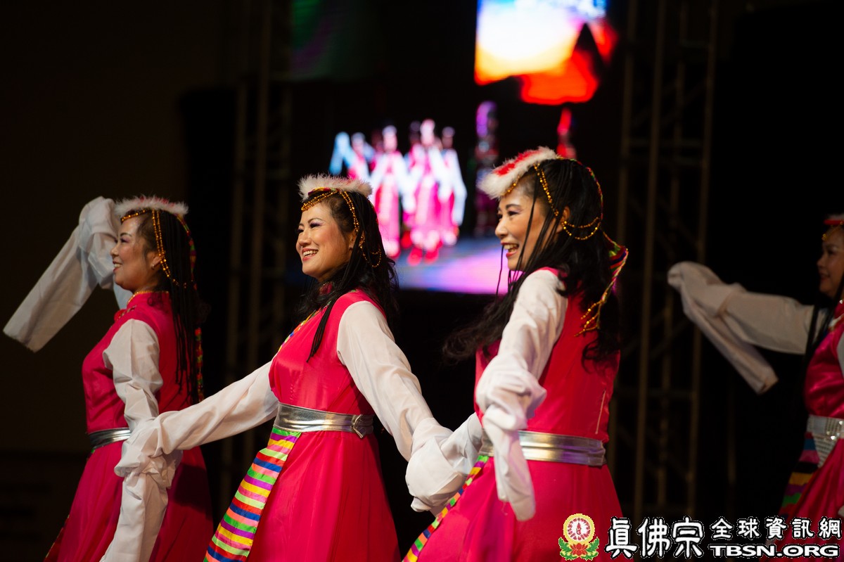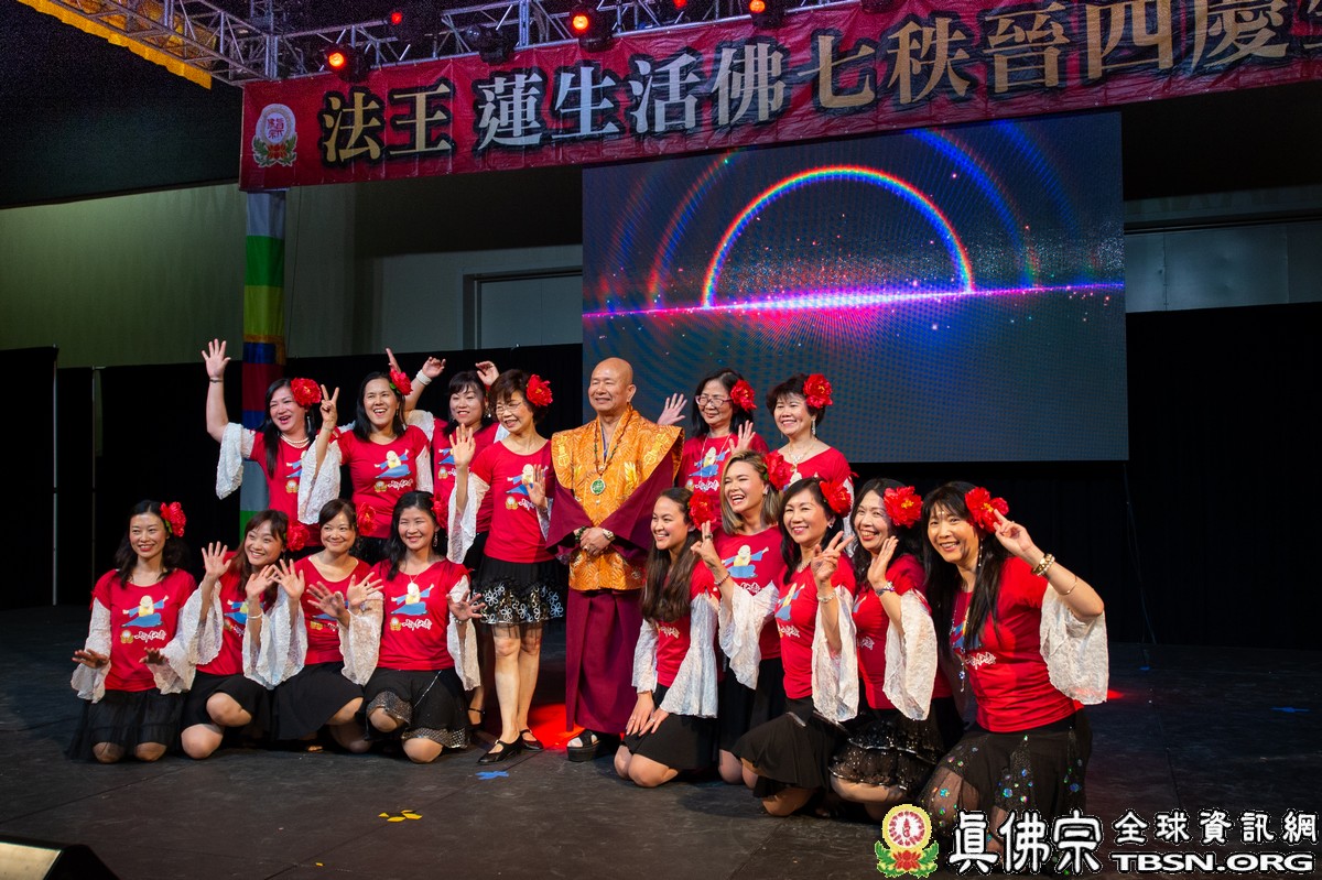 當晚除了專業歌舞表演連場,真佛宗代表有天音雅樂歌詠和師母一起呈獻的陽光舞供團舞蹈,並有由蓮訶上師「銜導主演」的笑話劇,劇中引用了不少師尊開示時說過的笑話,可見的確有做足功課,至少好好聽過師尊開示(的笑話)(一笑),大家想起師尊說過的句子,自然會心大笑,其樂融融。