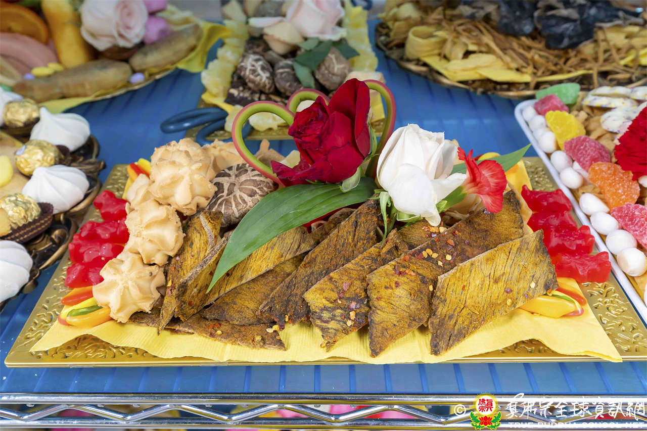 瑤池金母護摩法會開始,恭請師尊加持主祈人及功德主,是滿滿的幾大疊,眾等第一祈願,為師佛祈求佛誕快樂,健康長壽,請佛住世。