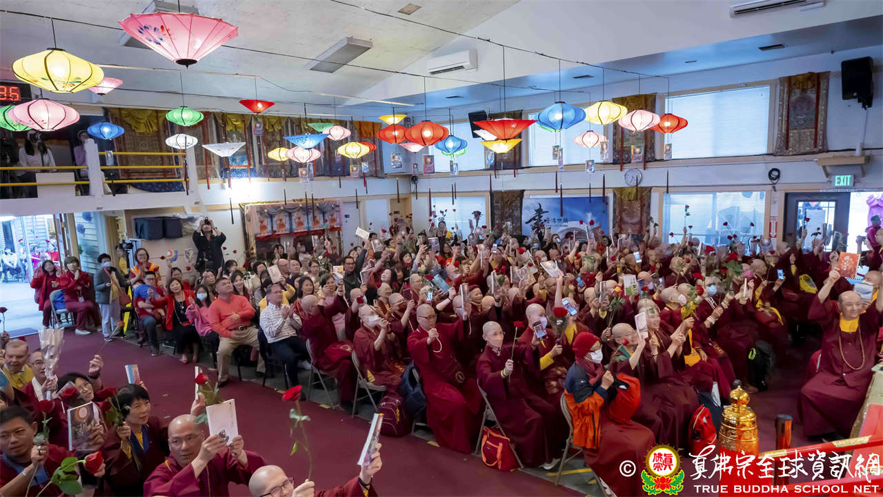 2024年6月23日星期日,下午三時,彩虹雷藏寺隆重舉行「瑤池金母護摩大法會」,來自世界各地的真佛弟子,湧入彩虹雷藏寺,大家都穿上紅色的衣服,手上拿著紅玫瑰花,隨身還帶著一本師尊文集,臉上都是笑容。連保安組開會都交代,今天慶祝師尊佛誕,執行任務要寬容一點。
