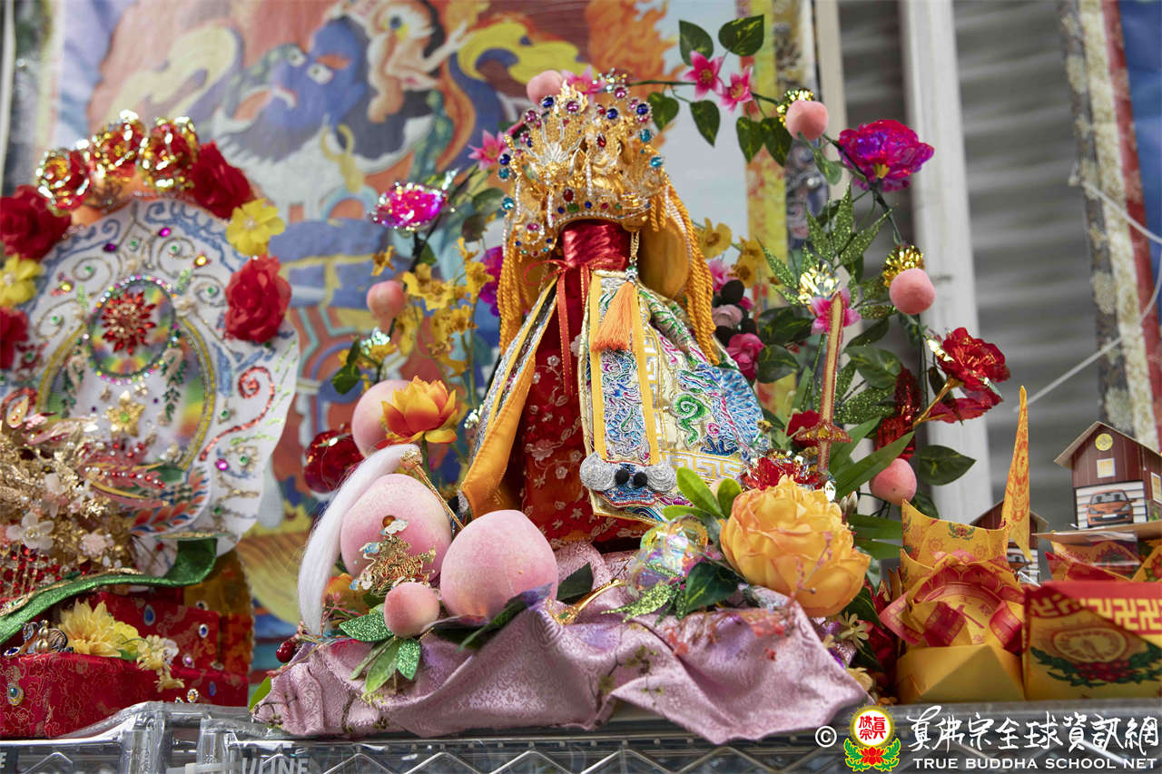 師尊謝謝大家送的禮物,這樣大的盛會在真佛宗是很少的。天上也有盛會,金母已到了,周遭有侍者,包括所有兒輩女兒,三千侍女,奧明天十萬空行母,雪山女神、六長壽天女、十二吉祥天女、恆河女神、妙音天女、五色天女,瑪幾拉尊、咕嚕咕咧佛母、金剛瑜珈母、多傑帕母,蓮師五大佛母及其他佛母。