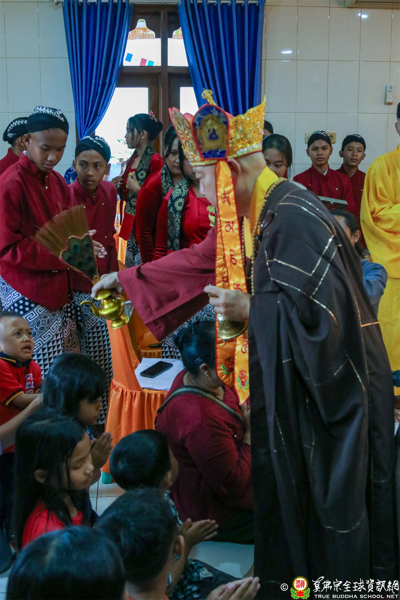 法會開始由慈藏雷藏寺青年組的迎師隊恭迎上師及教授師入壇場。迎師組全都穿著爪哇的傳統民族服飾,非常亮麗。法會疏文是以爪哇語宣讀,咒音是以梵文唱誦,同門都虔誠地唱誦祈禱,並進入專一的境界。