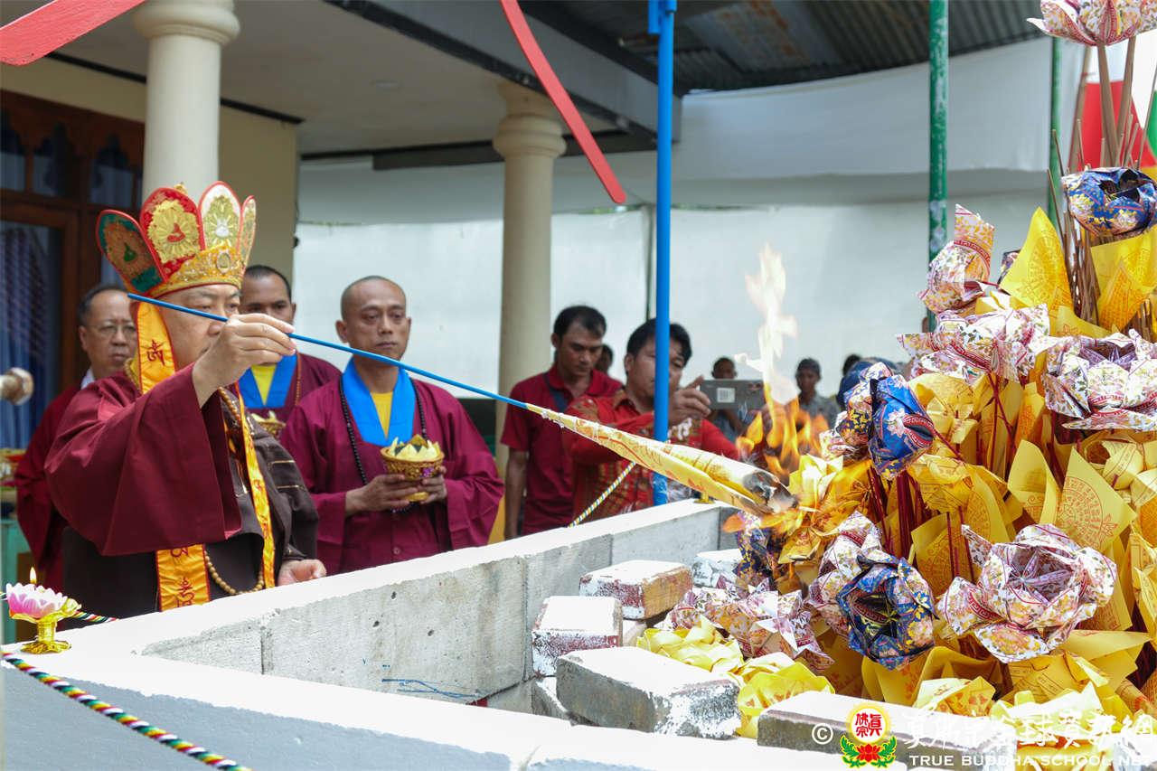 中爪哇Cilacap, 真佛宗密教總協會屬下的真佛弟子,假座慈藏雷藏寺舉辦金剛薩埵祈福超度護摩大法會。恭請真佛宗密教總協會僧團主席釋蓮飛上師主壇。這是一場非常莊嚴殊勝又充滿意義的法會。