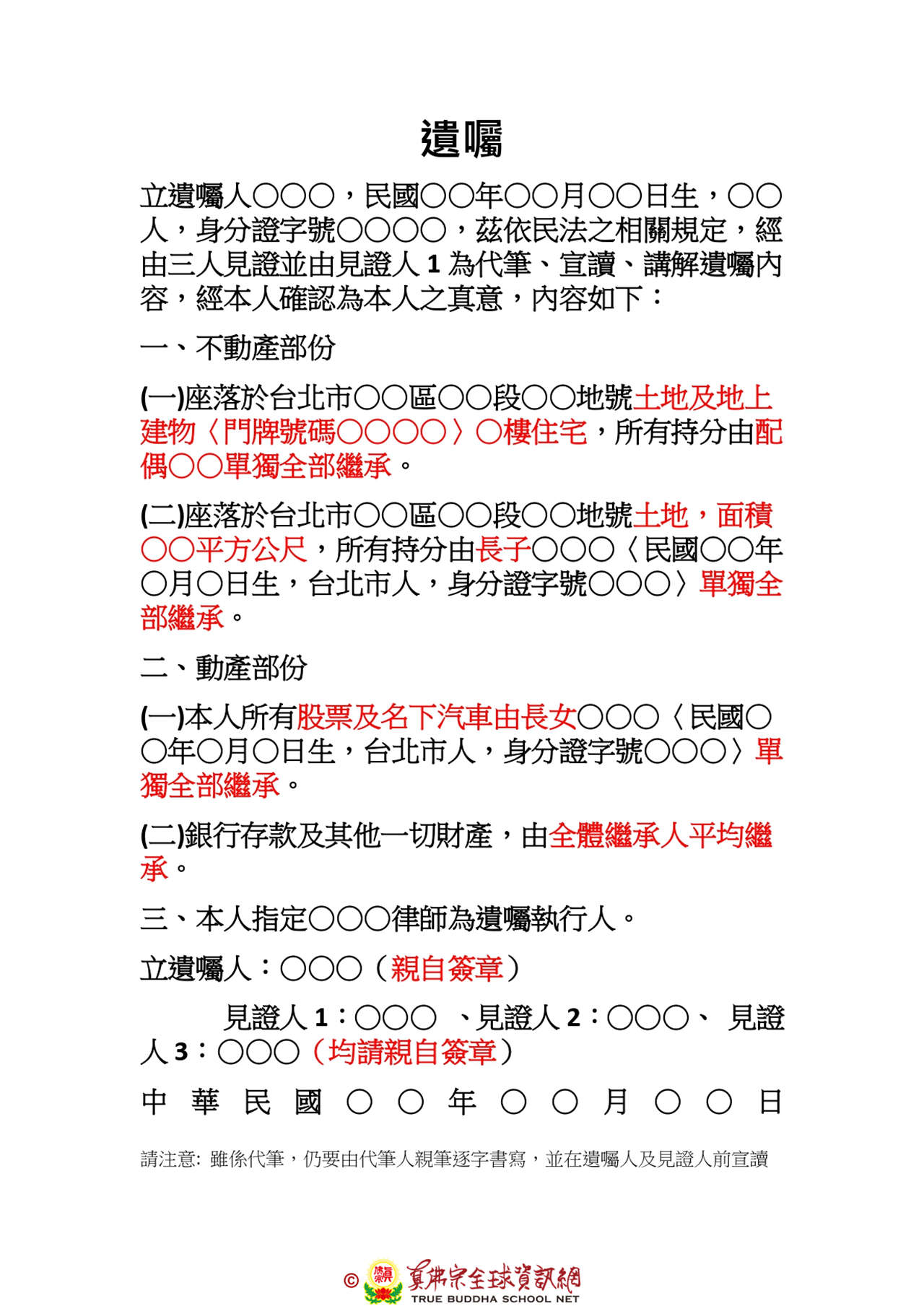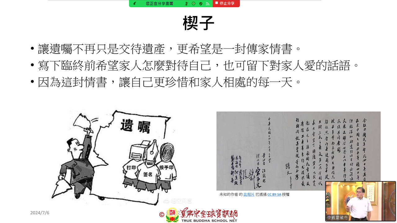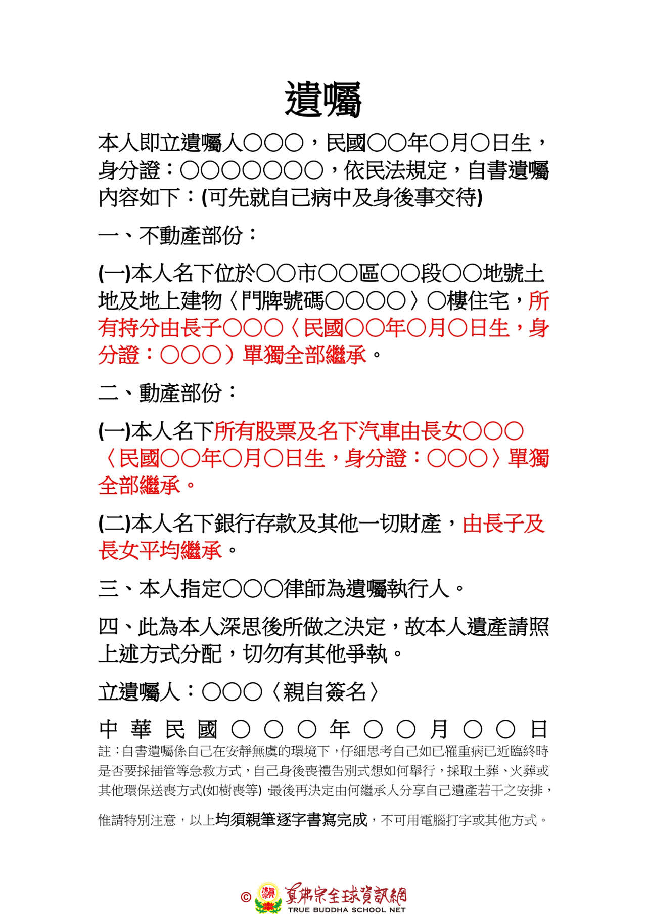 但是遺囑是以「傳家情書」的精神,這是通用於各國的,經常做《告別練習》讓我們懂得更珍惜當下、珍惜身邊的所有人、懂得把握時間念佛持咒,做好準備等待佛菩薩接引往生。