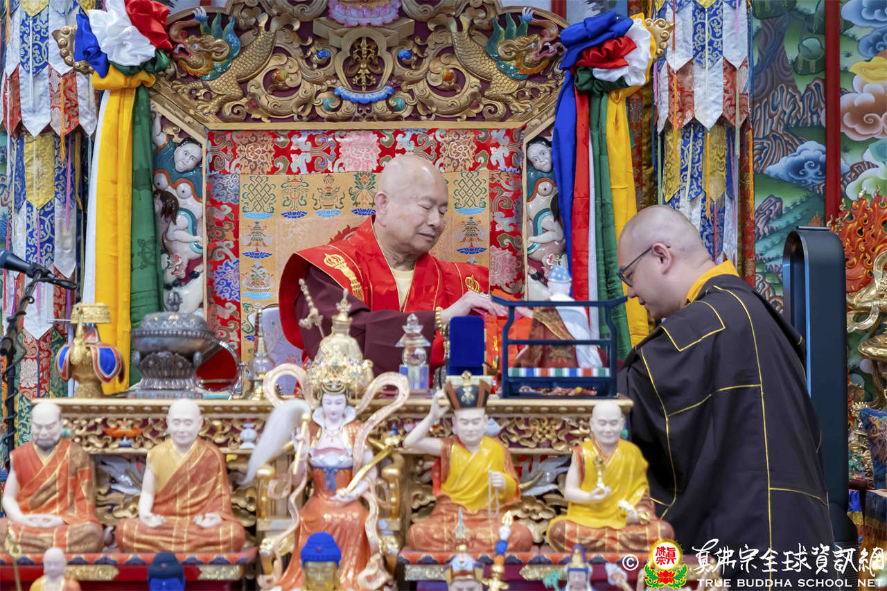 法王開示至此,護摩法會圓滿結束。接著,法王與線上的弟子打招呼,並為現場出席者賜授蓮華生大士法灌頂。