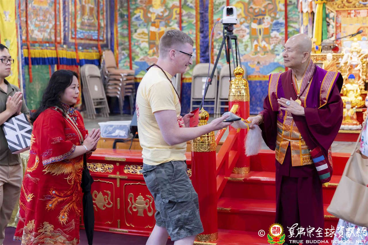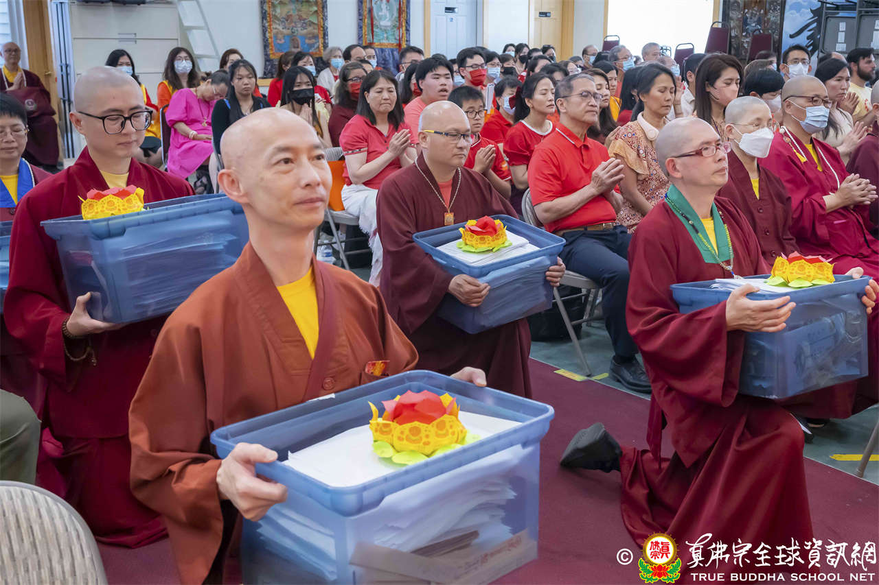 精彩的開示後,法王與網路線上弟子互動,並慈悲賜授現場弟子「阿彌陀佛法及千艘法船法灌頂」,與會眾等法喜充滿、心開意解,護摩法會圓滿吉祥。