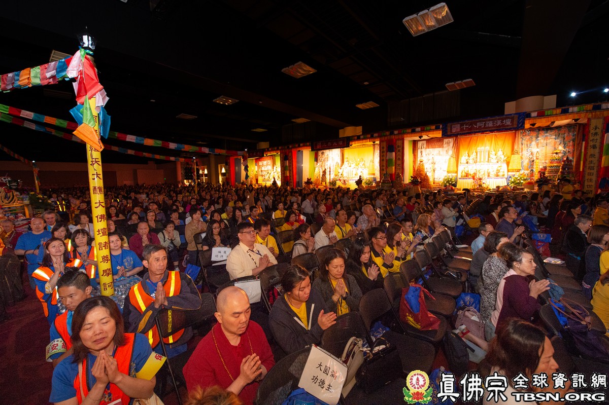 此次法會在屋崙會議中心(Oakland Convention Center)舉行,共有兩百多位上師、法師與真佛宗弟子共約5000人親往護壇,會場設立七大壇城(大佛壇、八大菩薩壇、十八羅漢壇、瑤池金母壇、地藏壇、三界天壇和金剛護法壇),再加上法會主壇城,以及往生壇和延生壇,共有十座壇城,每座壇城皆有一尊焦面大士(觀世音菩薩慈悲化現)鎮守,每壇皆十米高,供養如山如海的各式供品,氣勢壯觀令人讚嘆,中央「大佛壇」的至高點豎立黑令旗,攝令所有鬼神眾與會,展開前所未見的【羅天大醮】。