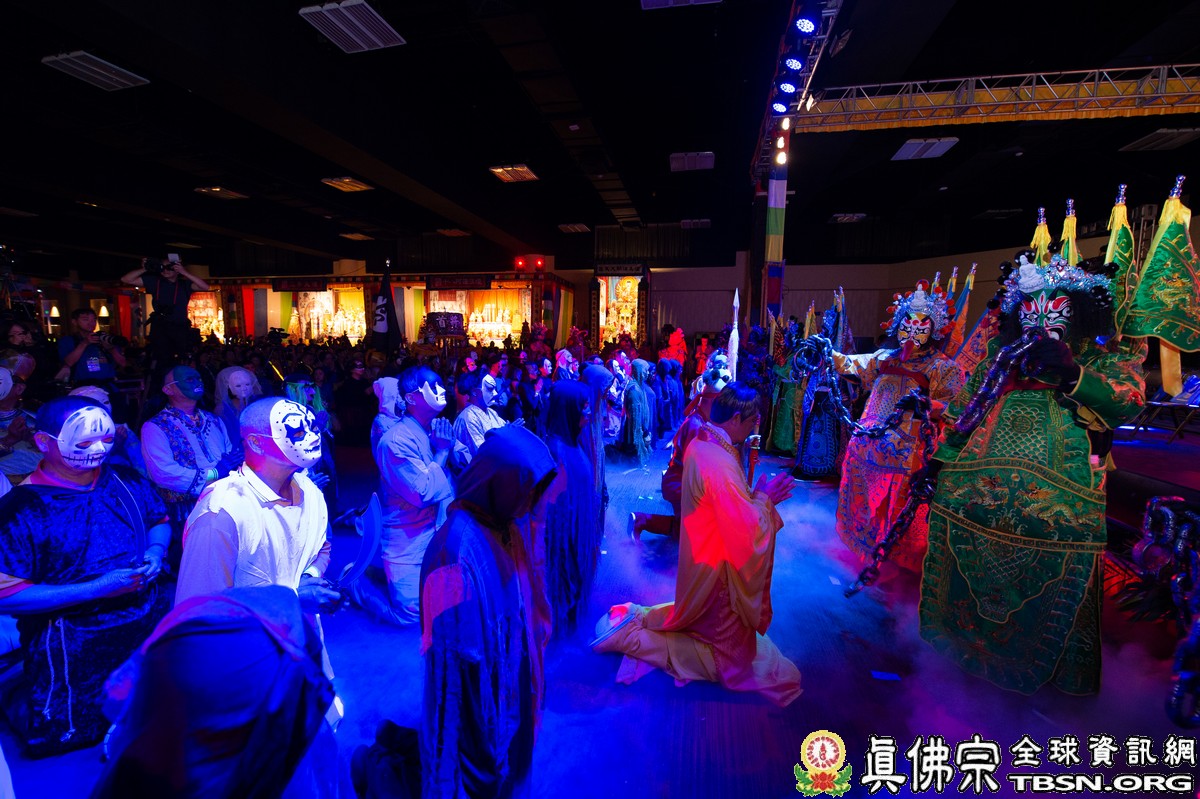 此次法會以劇場舞蹈方式演出「眾生無明」、「破地獄」、「召請諸尊,佛力救度」和「法布施 - 為眾靈皈依授戒」,讓整場法會氛圍震撼,震懾天地眾靈!