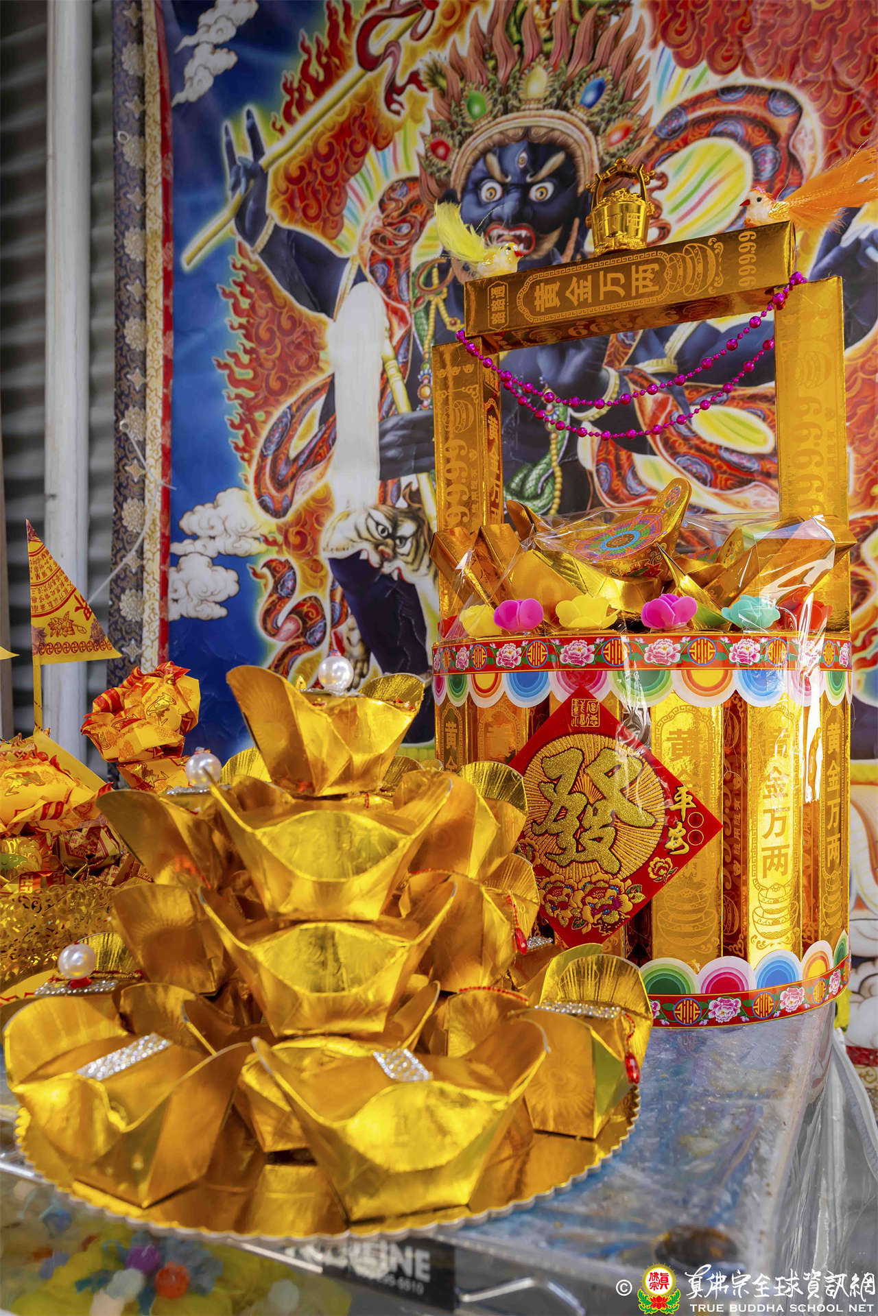2024年8月18日,聖尊蓮生法王於西雅圖彩虹雷藏寺主壇中元節地藏王菩薩護。護摩結束後,法王預告8月25日下午3點將主持紅財神護摩法會。印度有三大神:遍淨天維濕奴Vishnu、大梵天Brahma和大自在天Shiva,紅財神是Shiva的兒子。