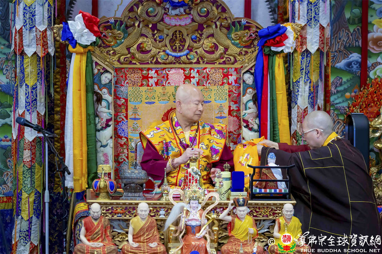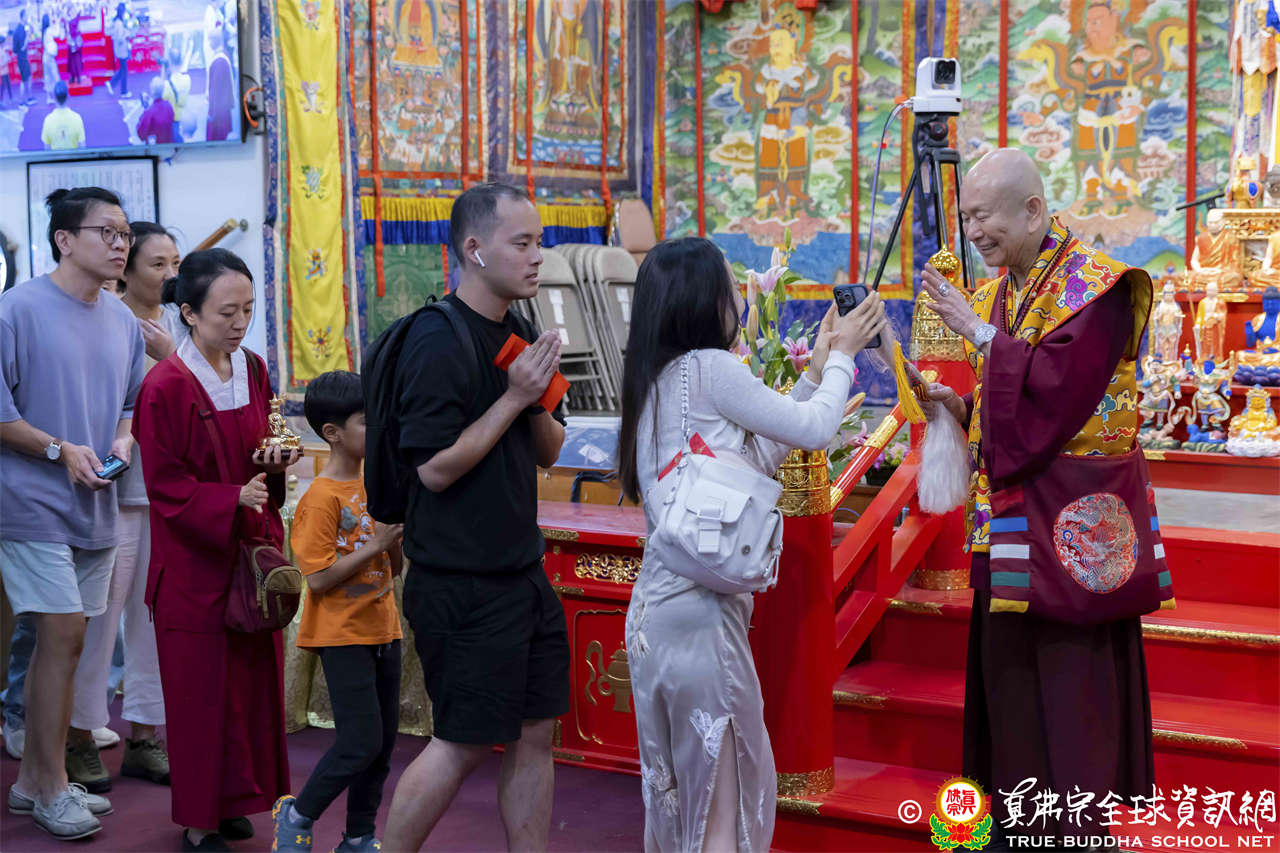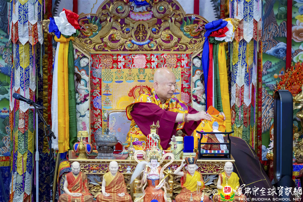 在這次法會中,法王強調了中元超度的重要性。中元超度儀式中,首先要有水,主壇法師要用水來遍灑甘露。第二個要有糖果,要把糖果化為所有的食物,供養所有的幽冥眾。第三個要有米,代表是所有的資糧。在一般的超度裡面,需進行灑甘露、灑糖果、灑米的儀式。然而,當儀式材料不齊全時,法王通過變化心力,讓所有物品化為甘露、資糧和蓮花,滿足眾生的需要。這次的中元節地藏王菩薩超度做得很圓滿,願所有的幽冥眾全部往生佛國淨土,如果還有剩下來的,就回去跟法王的千艘法船一起走。