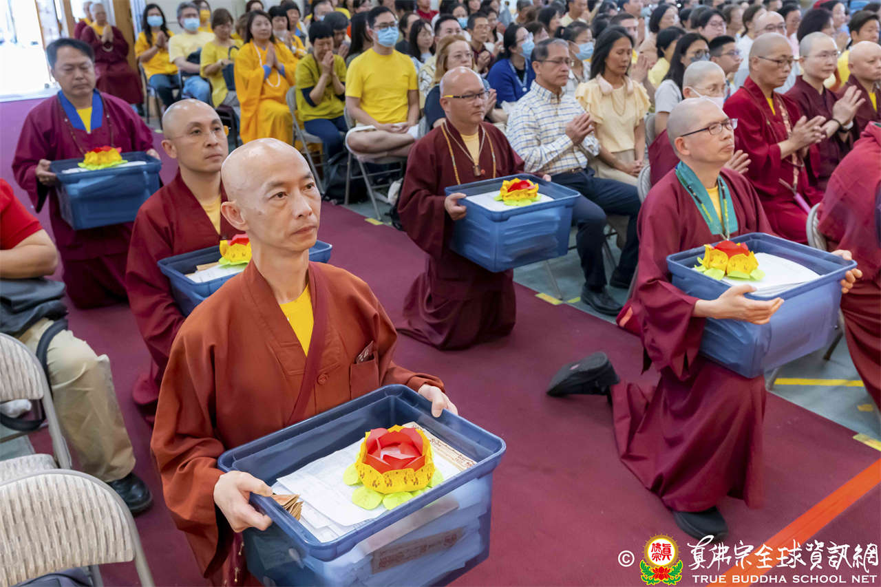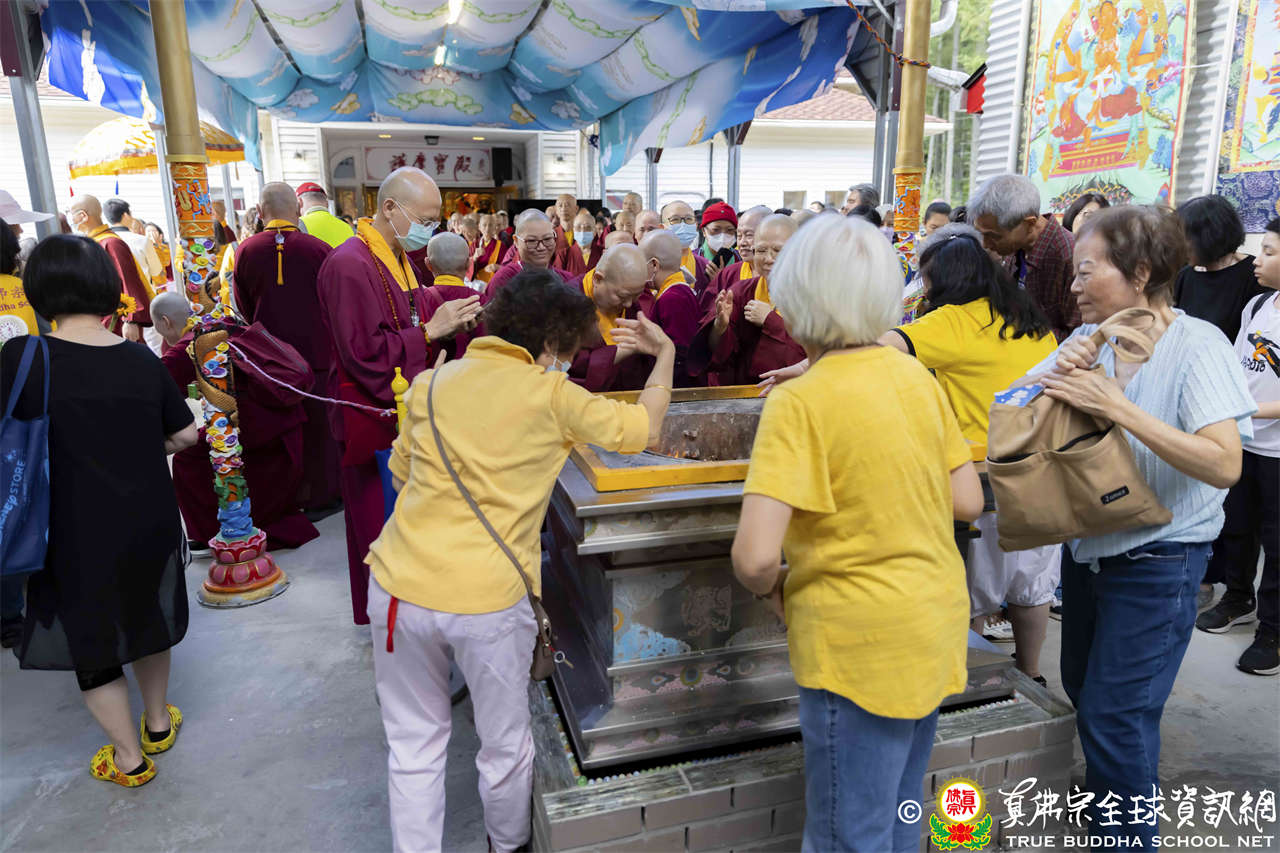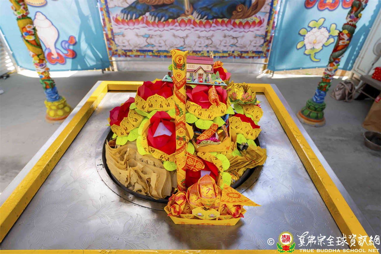 在這次法會中,法王強調了中元超度的重要性。中元超度儀式中,首先要有水,主壇法師要用水來遍灑甘露。第二個要有糖果,要把糖果化為所有的食物,供養所有的幽冥眾。第三個要有米,代表是所有的資糧。在一般的超度裡面,需進行灑甘露、灑糖果、灑米的儀式。然而,當儀式材料不齊全時,法王通過變化心力,讓所有物品化為甘露、資糧和蓮花,滿足眾生的需要。這次的中元節地藏王菩薩超度做得很圓滿,願所有的幽冥眾全部往生佛國淨土,如果還有剩下來的,就回去跟法王的千艘法船一起走。