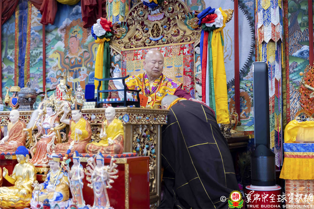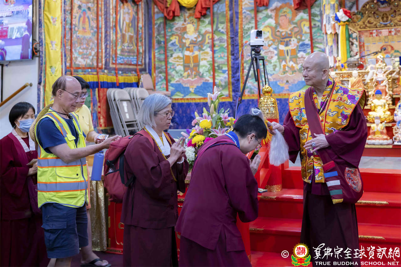 法會最後,法王移駕到Zoom前與弟子們互動,弟子們誠摯地感恩法王開示,並傾訴心中的感恩與敬意,法王慈悲賜授現場與會大眾「地藏王菩薩法」灌頂,法會圓滿結束。
