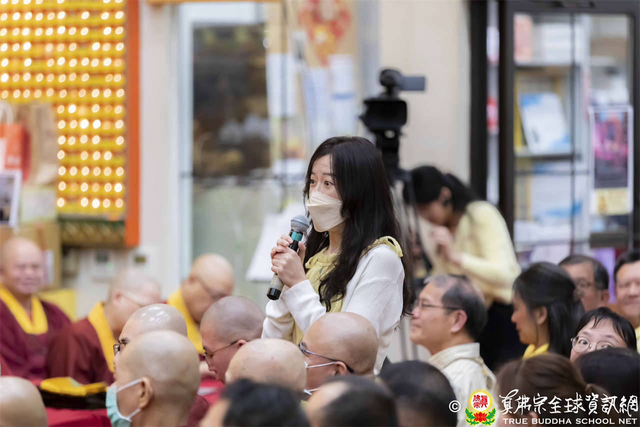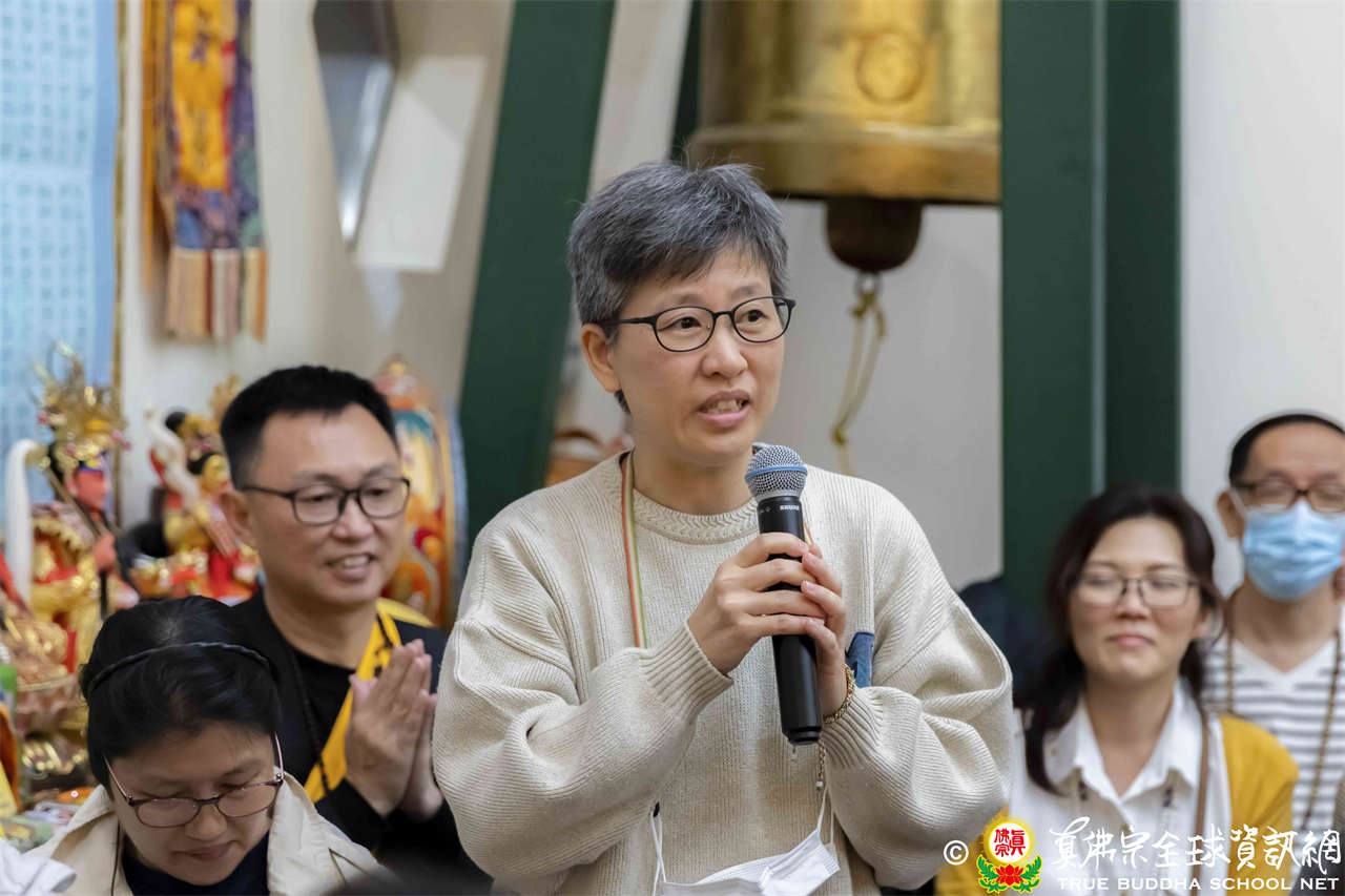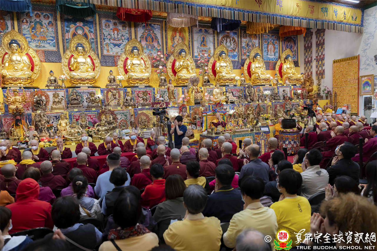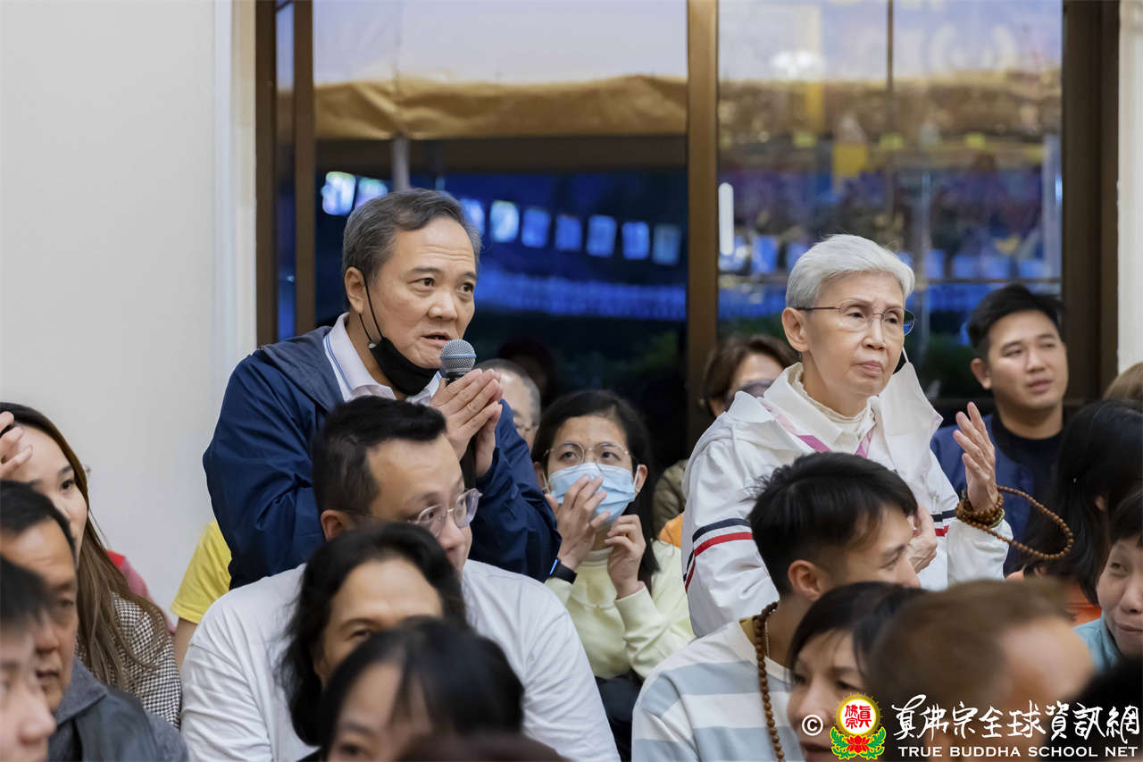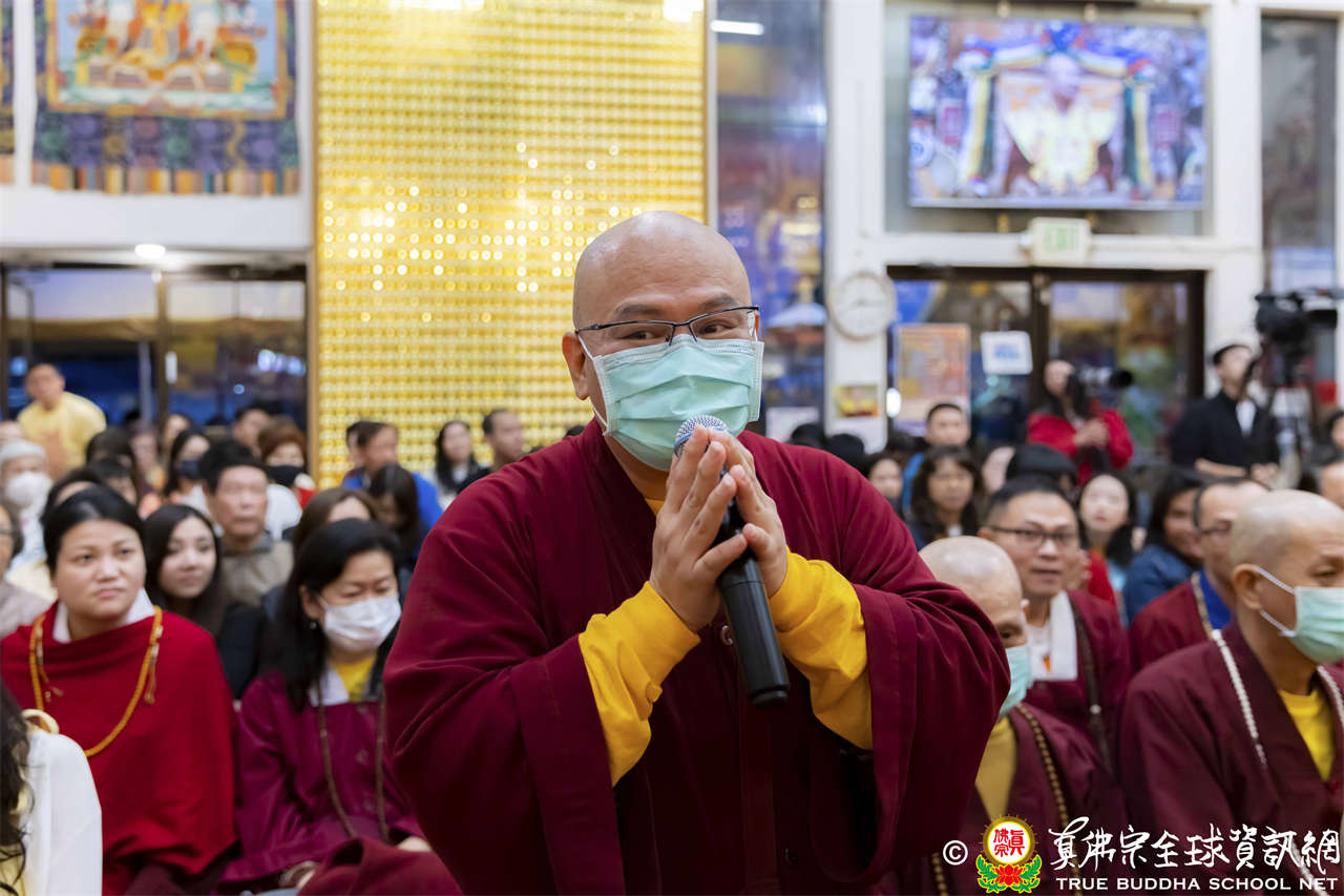 聖尊精彩寶貴的法語開示後,慈悲為新皈依弟子做皈依灌頂、加持大悲咒水、開光佛像,及持拂塵加持與會大眾。