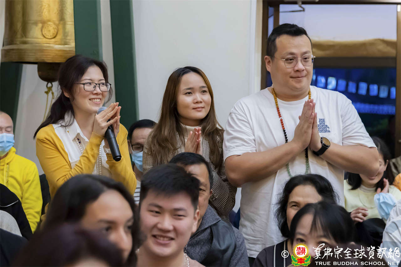 同修結束後,大家觀看了一段由真佛般若藏製作的影片,片中有加州蓮花曉光師兄的見證聖尊法身與佛菩薩空行諸尊。聖尊指出,許多現場的弟子都能見到五佛、四天王、黃財神及許多空行母。此外,聖尊還透露,在場兩位女弟子有特殊來歷,過去世曾在皇宮中,分別是周穆王和唐肅宗時代,而且巧的是她們都有一個「妃」字。聖尊並提及一位年僅二十歲的女弟子明慧,也是空行母,雖然目前沒有特殊的感應,但她擁有純真與慧根,只要一點開,很快就能夠見到。
