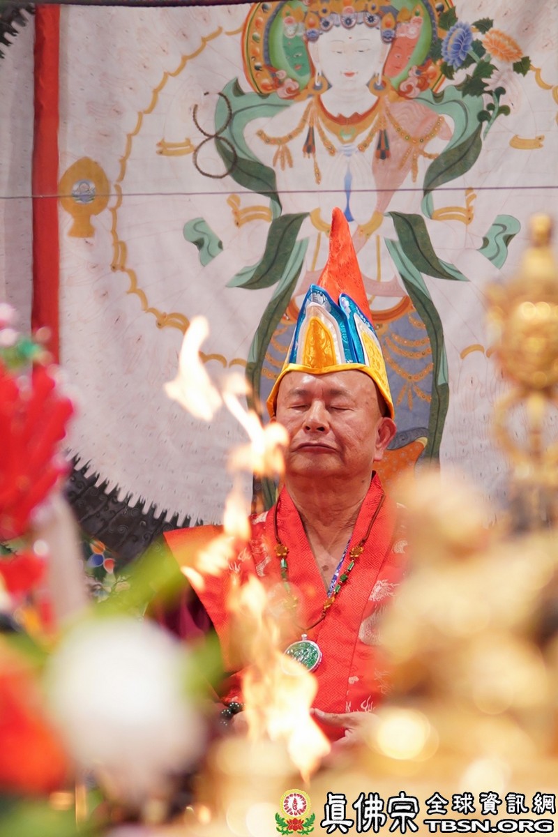 【TBSN西雅圖訊】2018年6月24日下午,美國西雅圖彩虹雷藏寺恭請根本上師蓮生佛主壇「長壽佛護摩大法會」,四眾嘉賓雲集。聖尊蓮生佛並於護摩後迴向,祈請長壽佛加持6月30日羅天大醮法會吉祥圓滿。