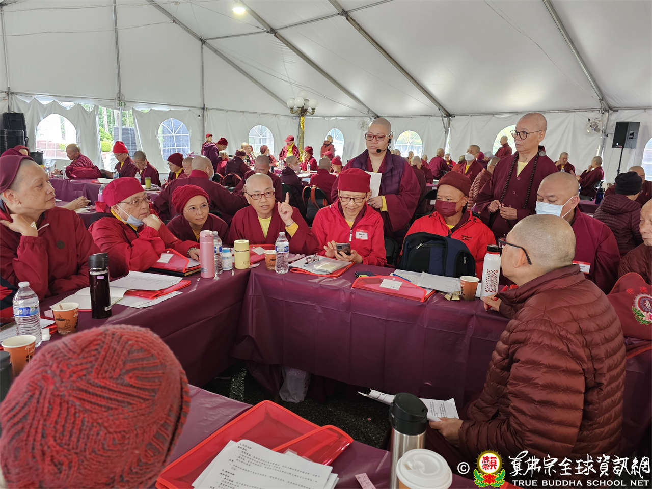 第一次分組討論時,只見各組法師針對議題,紛紛發表意見,除了少數可能因為語言因素,需要其他法師從旁協助翻譯之外,討論非常熱烈。本次代表該組的法師皆屬於資深法師,上台報告時,只見個個台風穩健、口條清晰、條理分明。這亦是教育處設計本次課程希望達到的目的,讓法師們互相學習,能多發表及訓練口才。