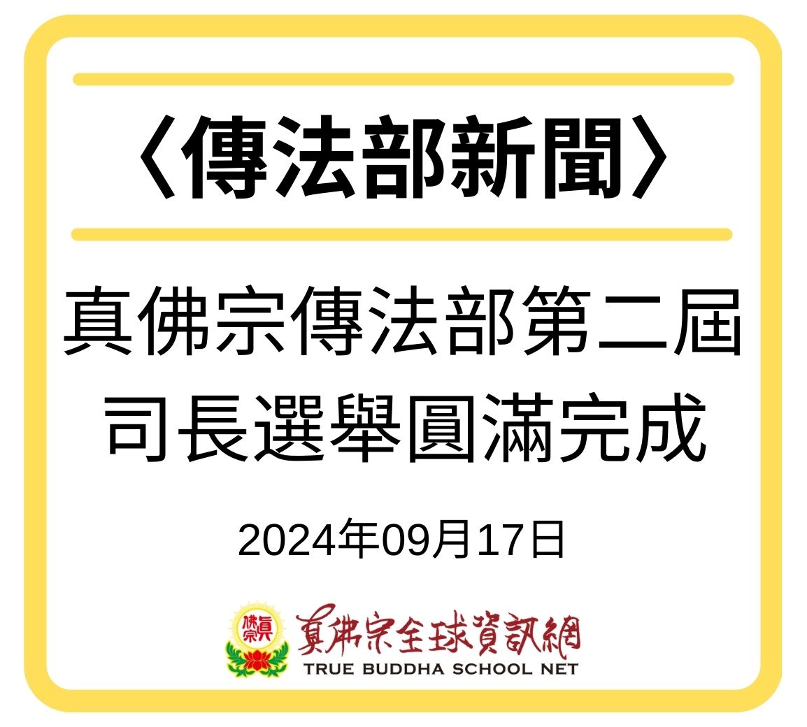 真佛宗傳法部第二屆司長選舉,已於9月15日圓滿完成。