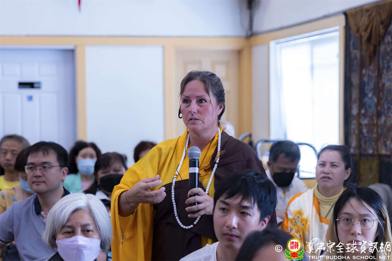 接著,法王分享了自己在中國、台灣與美國之間的經歷,並反思「愛國」的問題。祂指出,自己根源於中國,成長於台灣,現居美國,這三個國家皆有恩於祂,因此無法區分哪一個國家應該更愛。法王強調,修行人應該超越國界、正邪的區別,愛所有眾生。