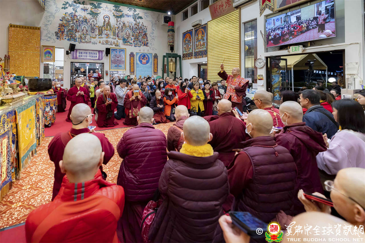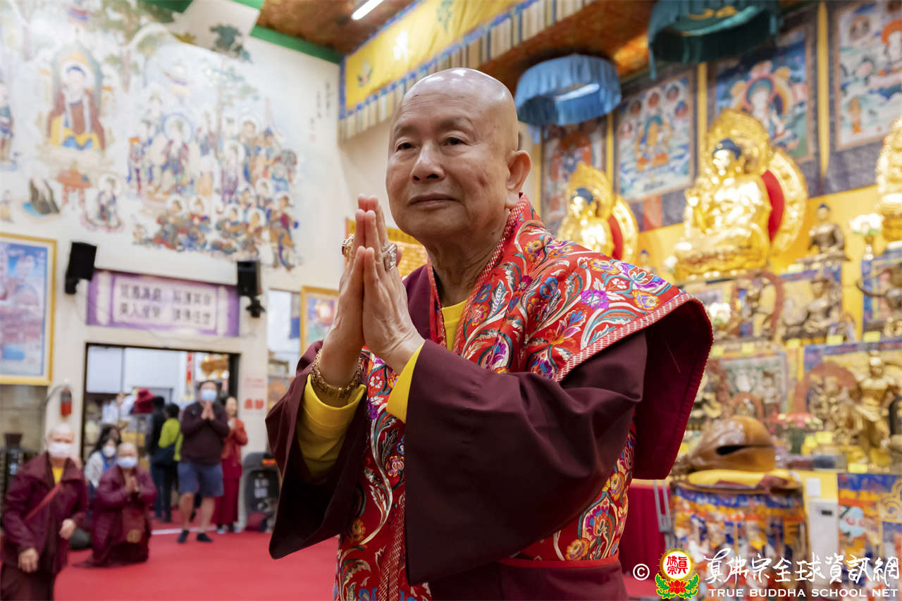 在寶貴的法語開示之後,聖尊為新皈依者進行皈依灌頂,加持佛像、供品以及大悲咒水,最後以拂塵加持與會大眾。聖尊滿懷慈悲,為了讓普羅大眾皆能領會深奧佛法,以最樸實無華的話語開演最高深的智慧,諄諄教導,與會眾人法喜充滿。