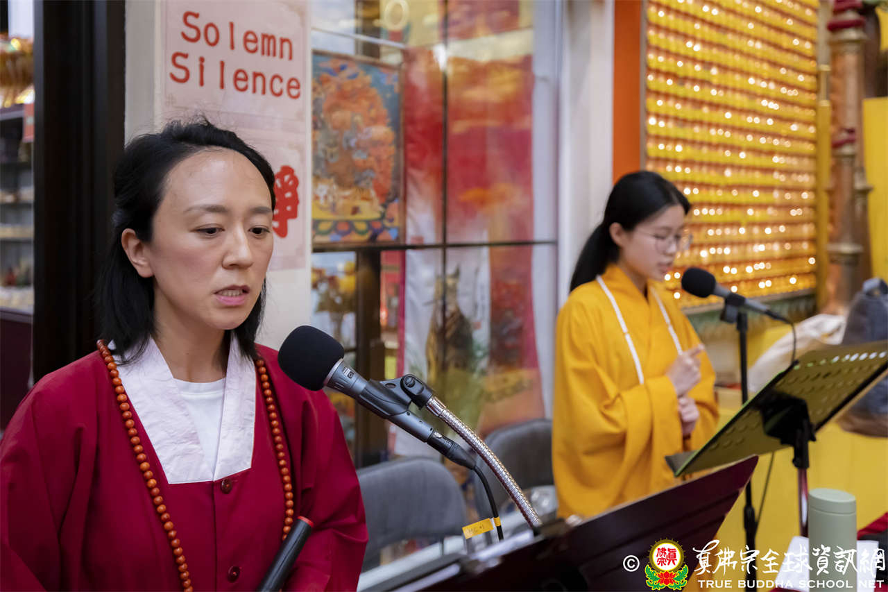 2024年9月28日聖尊蓮生活佛於西雅圖雷藏寺主持阿彌陀佛本尊法的同修,四眾弟子們亦皆靜心專注修持,共沐佛光。在同修結束之後,聖尊溫馨的以各國語言問候與會大眾以及網路上的同門。