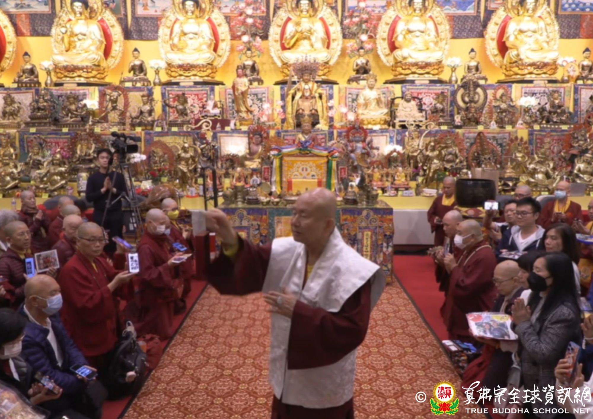 聖尊繼續解釋經意:維摩詰說到了那裡代維摩詰問候「香積佛」,並且希望可以得到香積國的佛菩薩吃剩下的食物,讓維摩詰的化身菩薩可以帶回裟婆世界做佛事,供養那裡的佛菩薩。讓那裡的菩薩阿羅漢可以弘揚佛法,也讓如來的名聲普聞,也可以讓大家聽到「香積淨土」以及「香積佛」的名稱。