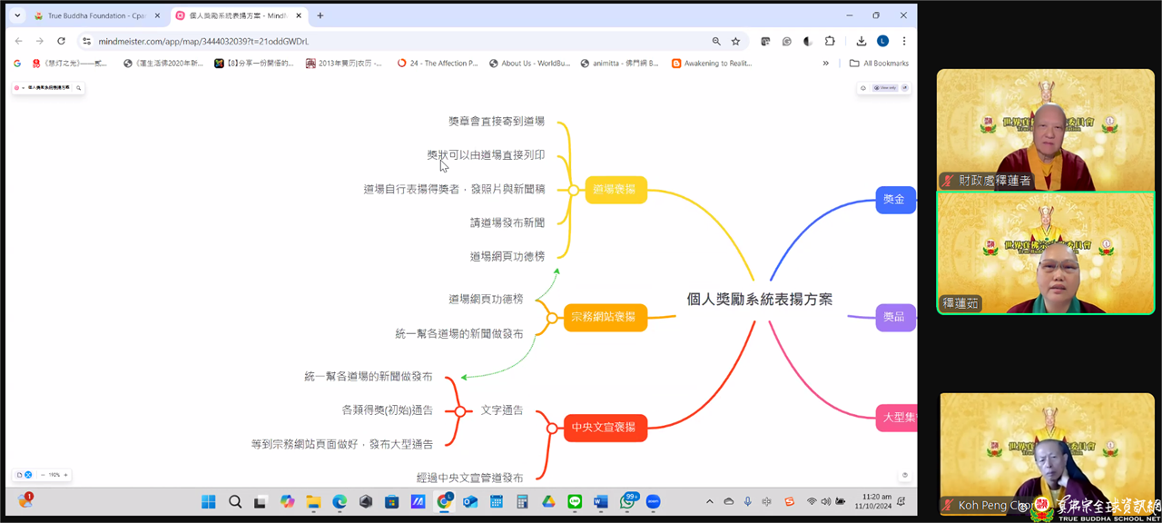 西雅圖時間2024年10月10日,假雲端ZOOM會議室,舉行第六屆核心小組暨常務委員第七次會議。在每一季召開一次與常務委員會議,俾讓常務委員們一起跟進宗務發展討論計畫,本次出席人員共有20位。